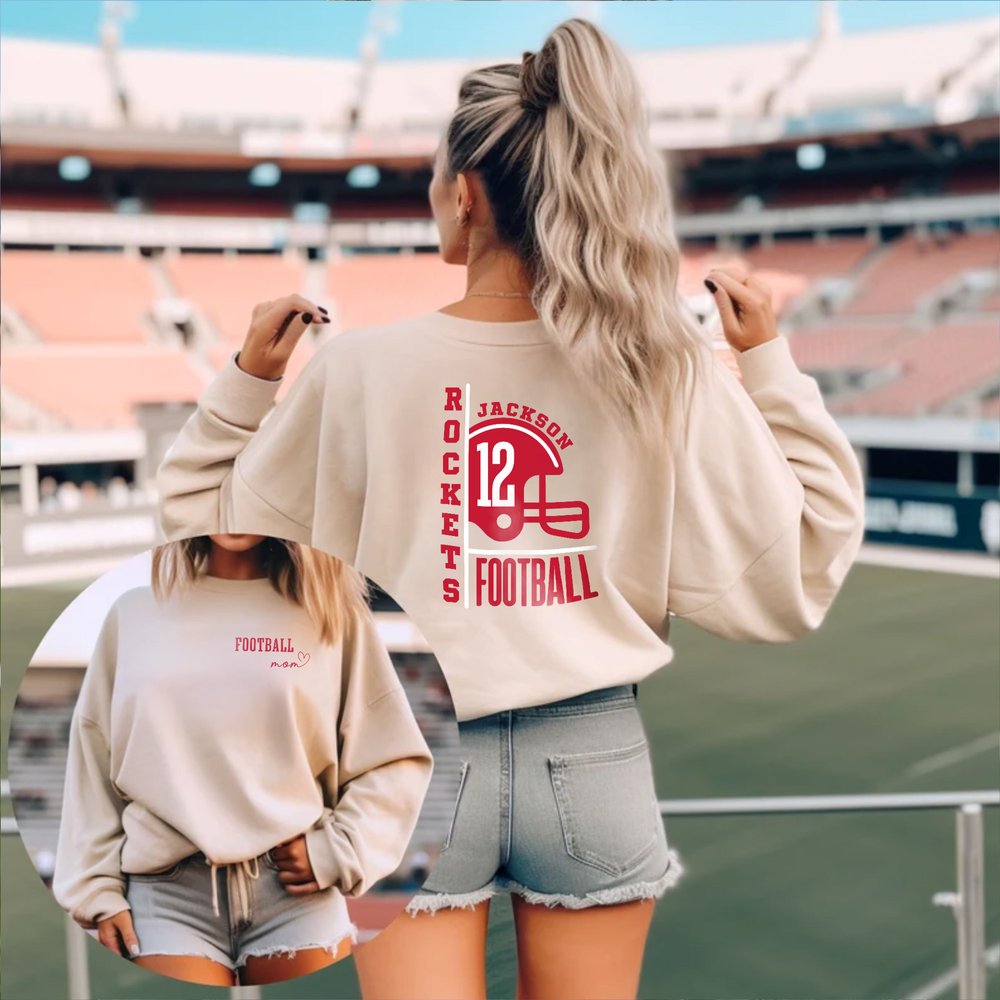 Je kunt een uniek exemplaar maken door de naam, het rugnummer en de teamnaam van je kind toe te voegen, gecombineerd met een klassieke voetbalhelmafbeelding op de achterkant. Voor een hartelijk tintje kun je ook een zin als "Football Mom" of "Football Dad" op de borst zetten. Dit niveau van personalisatie verandert casual kleding in een gedurfde verklaring van trots, zodat het duidelijk is voor wie je juicht op de wedstrijddag.