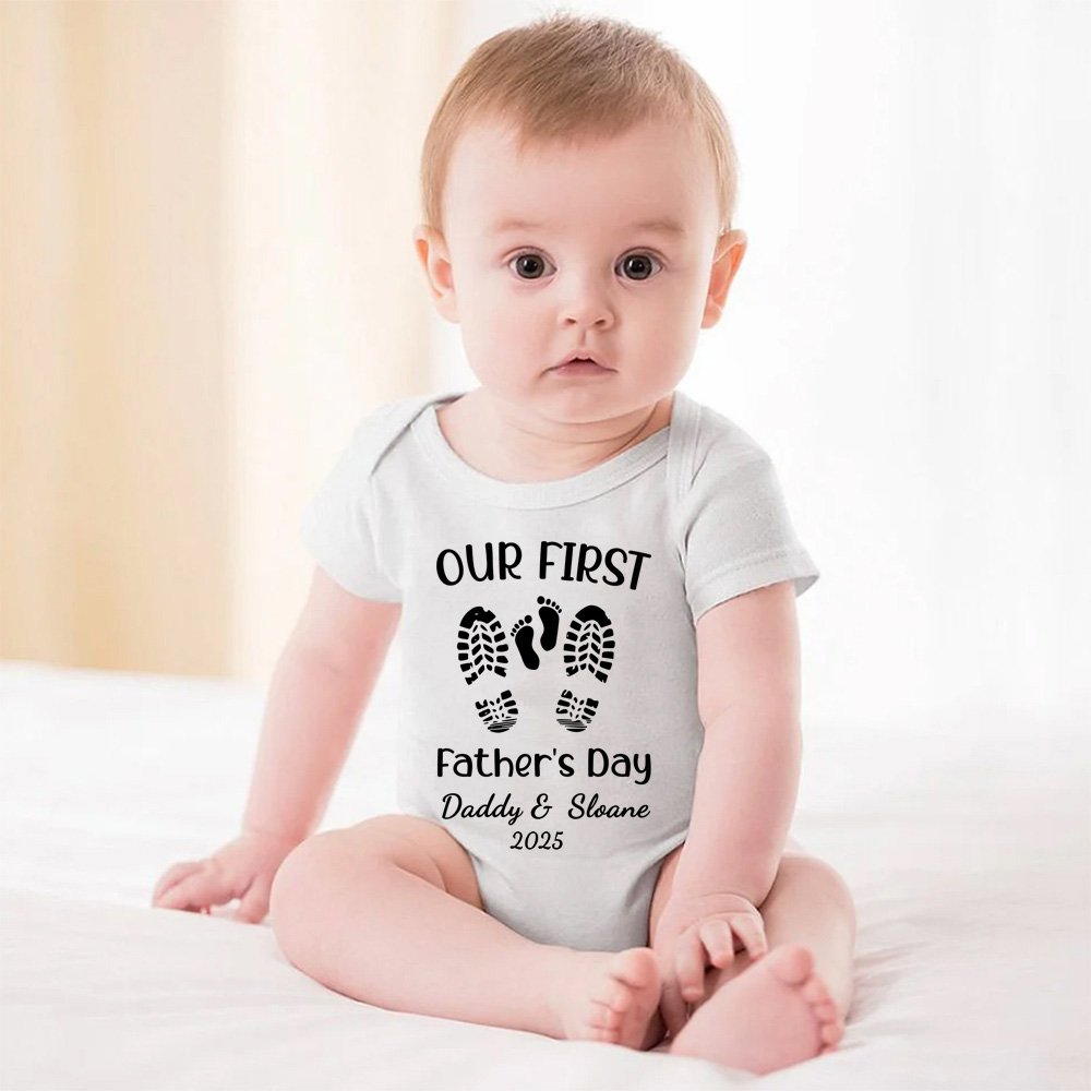 Ons gepersonaliseerde voetafdrukken outfit T-shirt is gemaakt van hoogwaardig katoen dat duurzaam is en lang meegaat. Het shirt is comfortabel om te dragen en krimpt of vervaagt niet na het wassen. De gepersonaliseerde voetafdrukken worden gedrukt met behulp van geavanceerde technologie, zodat het ontwerp levendig en opvallend blijft.