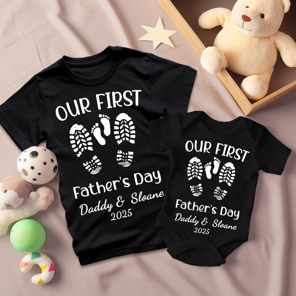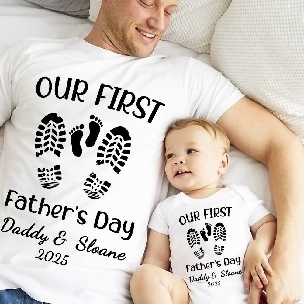 Dit t-shirt is gemaakt van zachte en comfortabele materialen en past perfect bij elk lichaamstype. Of je nu shopt voor een vader, dochter of zoon, dit shirt zal iedereen geweldig staan. De gepersonaliseerde voetafdrukken voegen een vleugje creativiteit toe aan het ontwerp, waardoor het echt uniek is.