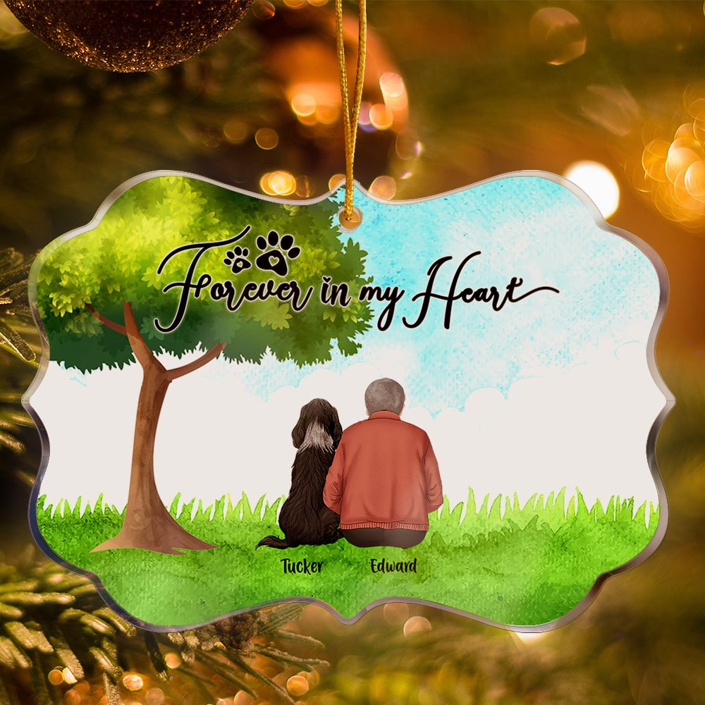 De boodschap "Forever In My Heart" is prachtig afgedrukt op het ornament en herinnert aan de goede tijden die honden en baasje delen.