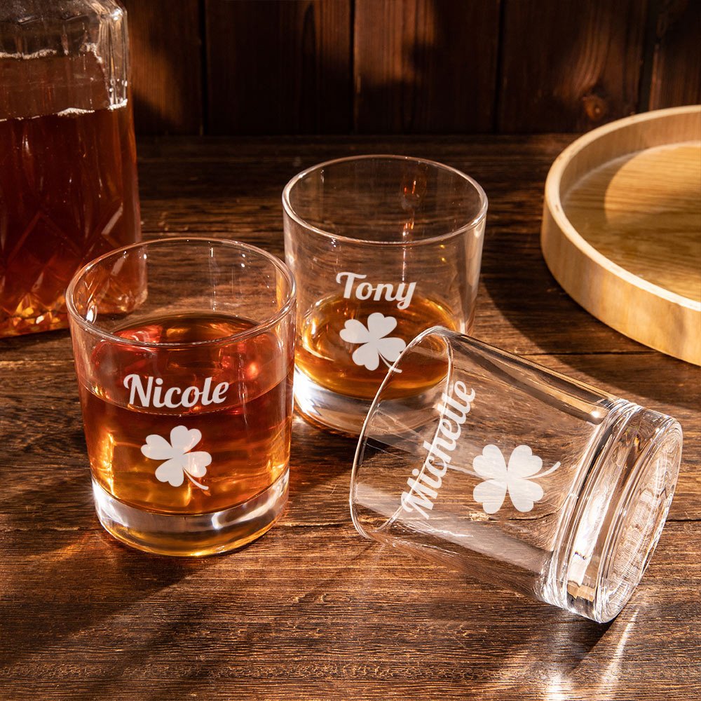 Het klavertje vier staat symbool voor geluk en voorspoed en is een iconisch symbool dat geassocieerd wordt met St. Patrick's Day. Het ingewikkelde ontwerp van het klavertje, vakkundig gegraveerd in de whiskeyglazen, voegt een geluksbetekenis en een verfijnd tintje toe. Het is alsof je een geluksbrenger in je handen hebt terwijl je van je favoriete wijn nipt.