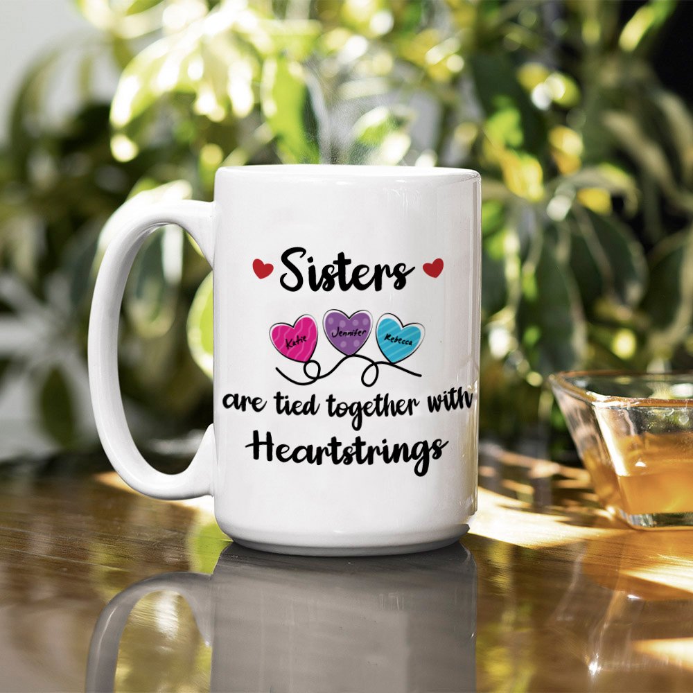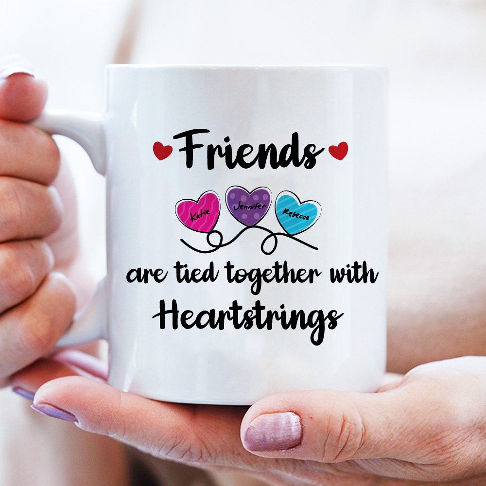 The mug features a heartwarming quote that reads "Friends are tied together with heartstrings," it serves as a constant reminder of the deep connection between you and your friend. To make it even more special, the mug can be personalized with 2-6 names, which symbolizes the unbreakable bond of friendship between each other.