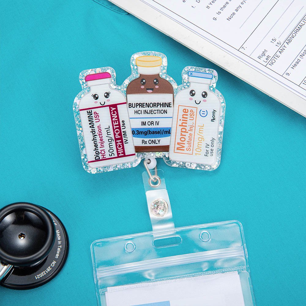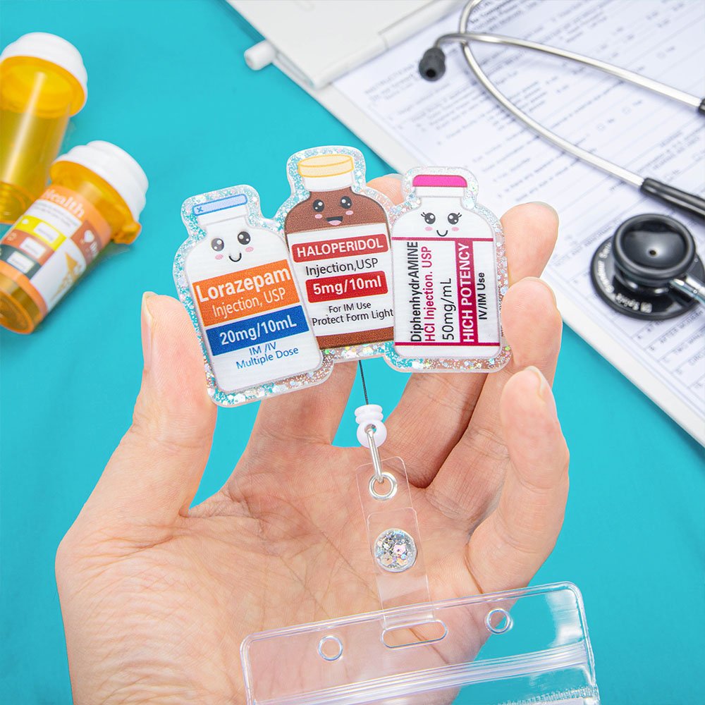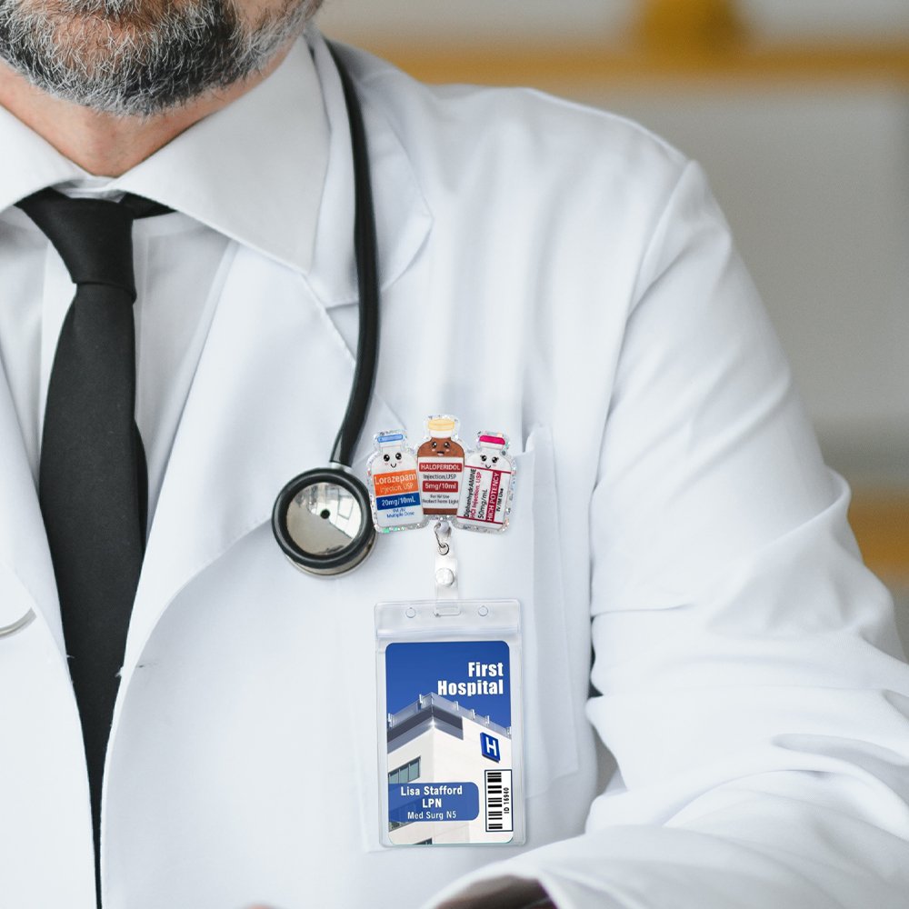 Badgehaspels kunnen leuk zijn. Waarom een saaie outfit dragen als je wat persoonlijkheid kunt toevoegen aan je werkdag en uniform? Verschillende medicijnnamen kunnen worden aangepast, een perfect cadeau voor je vrienden van het medisch personeel. Het zal zeker een glimlach op hun gezicht toveren.