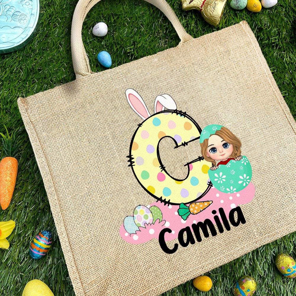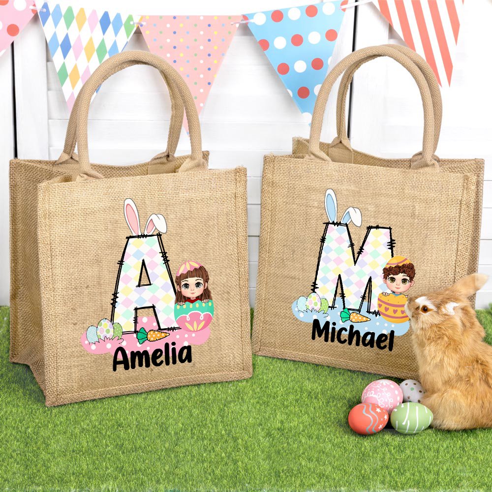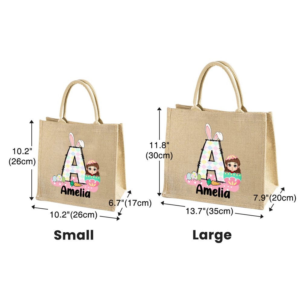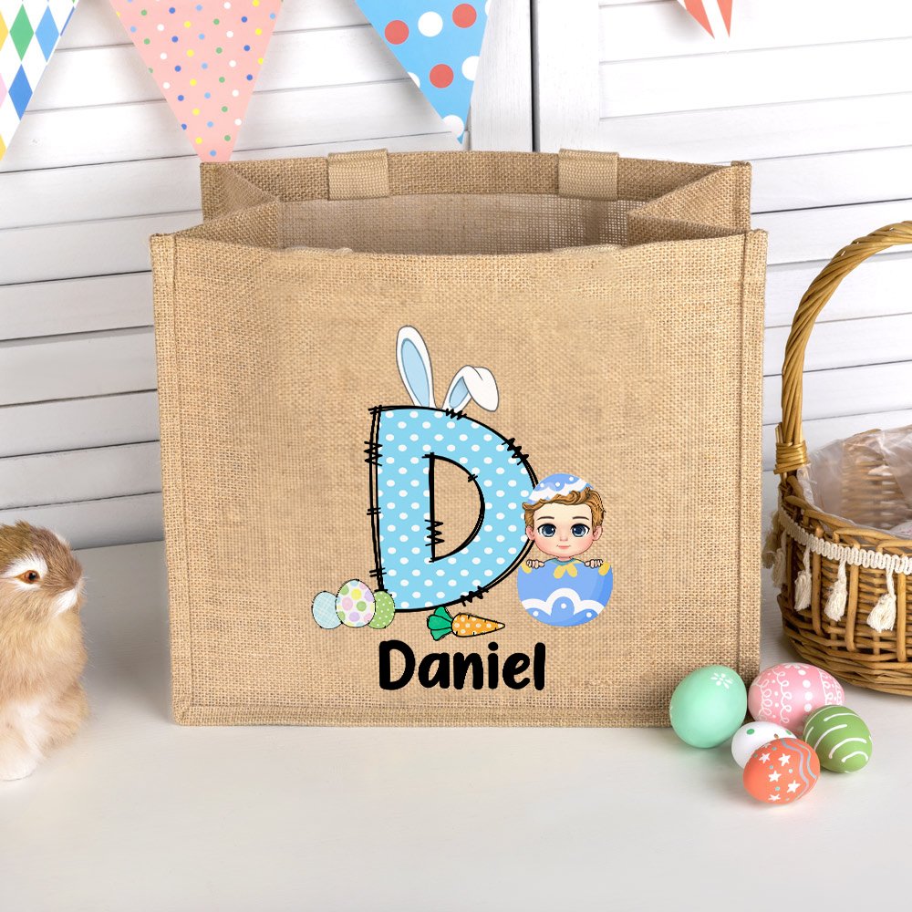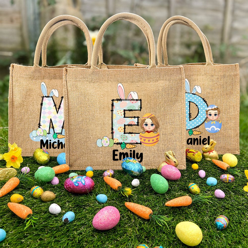 Deze draagtas combineert klassieke paaselementen met stripfiguren. Het schattige ontwerp voegt een vleugje eigenzinnigheid en vreugde toe aan de draagtas, en er zijn vijf letterstijlen om uit te kiezen. Je kunt er ook voor kiezen om je naam op de draagtas te laten drukken, waardoor het een uniek cadeau wordt tijdens Pasen.