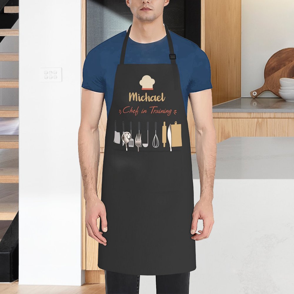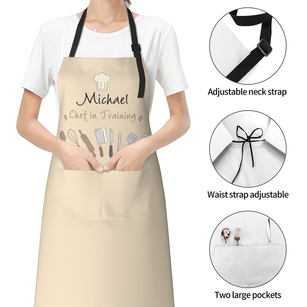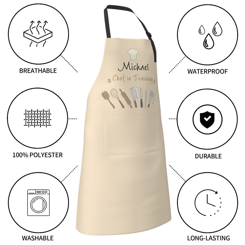 Het keukenschort is ontworpen met twee diepe zakken in het midden van het schort, en een ruime verdeelde zak kan je genoeg plaats geven om grillstrookjes, telefoons, receptkaarten, kruidenpakketten, receptkaarten, pen en telefoon, enz. in op te bergen.