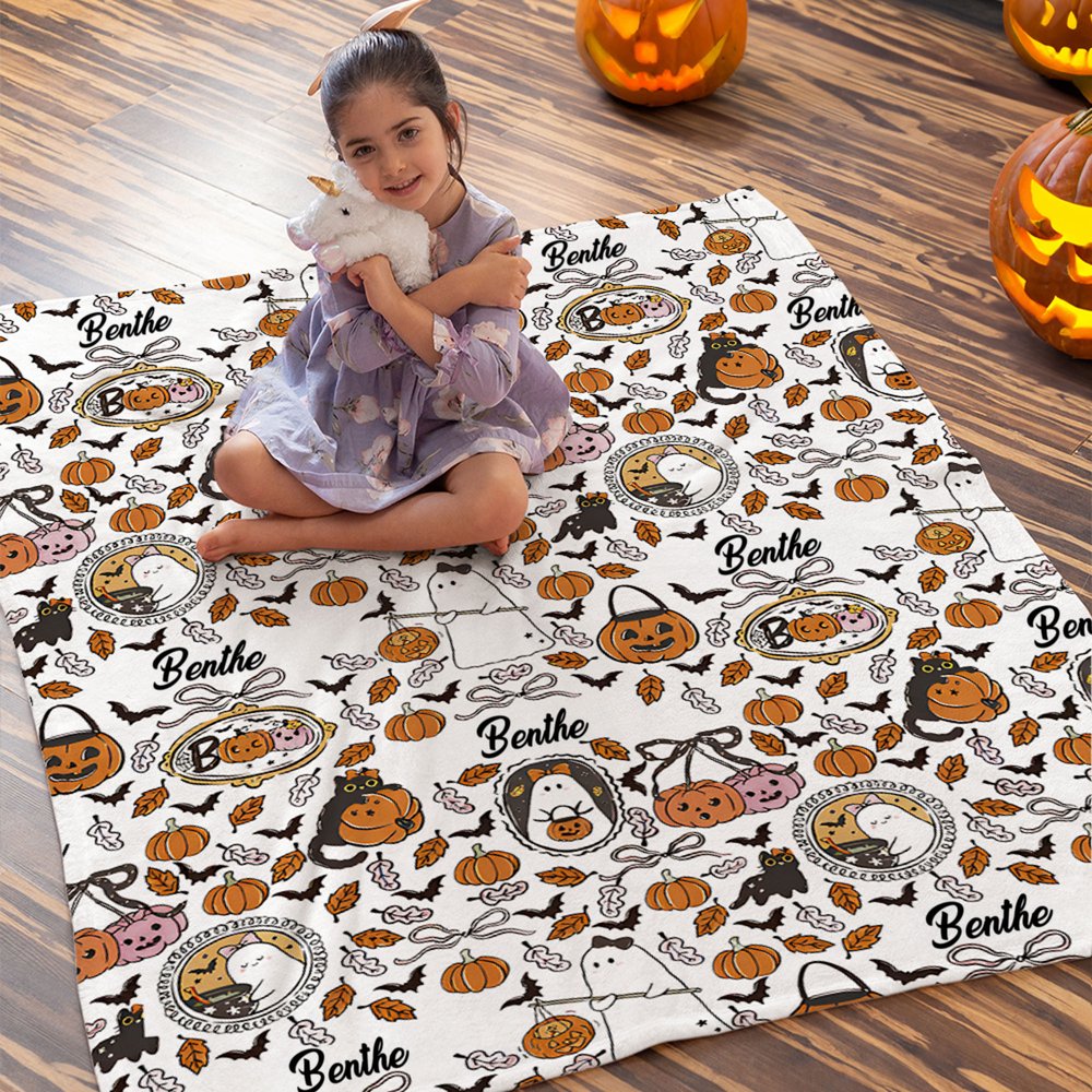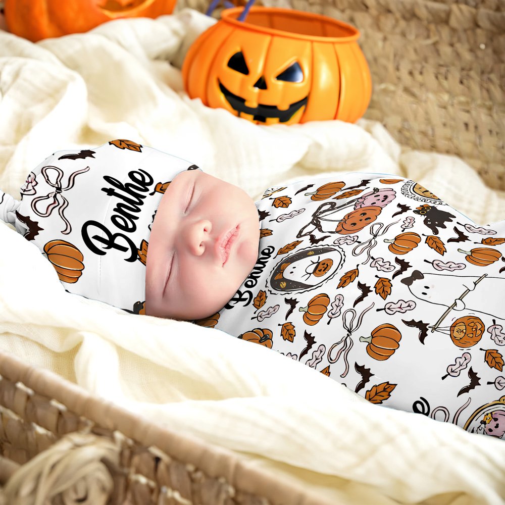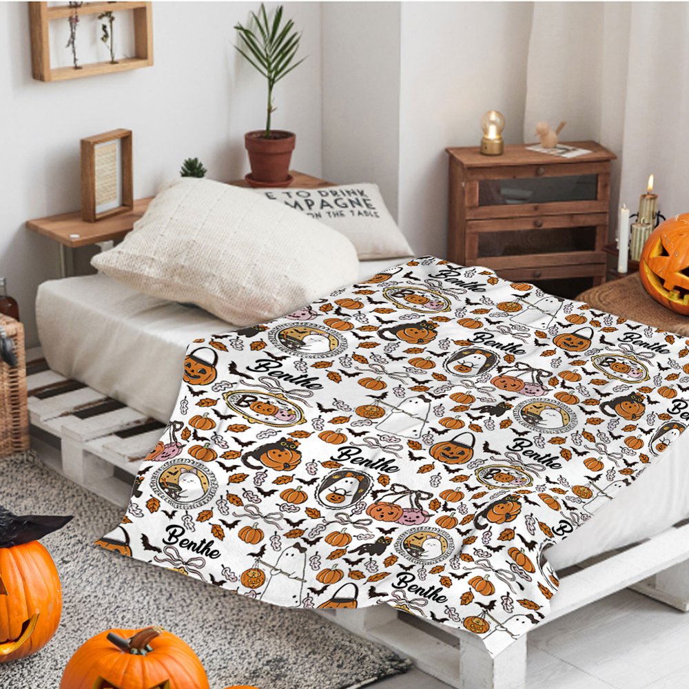 Halloween staat centraal in het ontwerp, gecombineerd met patronen van pompoenen, spoken, vleermuizen en katten. Kan worden gepersonaliseerd met naam. We bieden drie opties: fleecedekens, sherpadekens en knoopmutsset. Deze behouden niet alleen de Halloweensfeer, maar maken het ook tot het eerste exclusieve vakantiecadeau voor baby's, met gepersonaliseerde namen en schattige patronen.