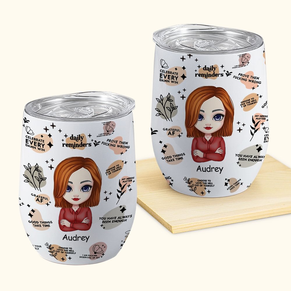 Gepersonaliseerde Mijn Positieve Affirmaties Dagelijkse Herinneringen Leuke Geïsoleerde Wijn Tumbler met Deksel 12oz voor Koffie Wijn Verjaardag voor