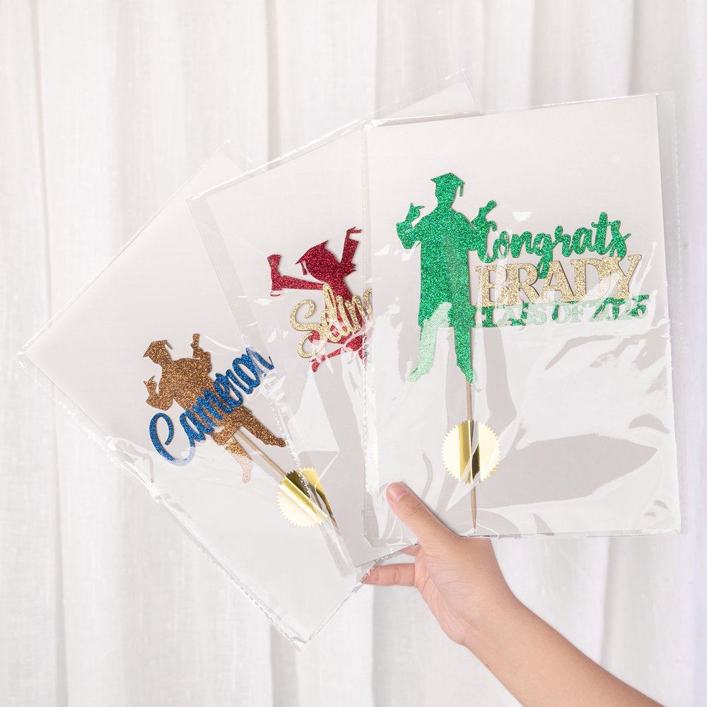 Behalve als taarttopper kan dit stuk ook worden gebruikt om een desserttafel, fruitschaal of middenstuk te versieren. Of het nu gaat om een familiediner na het afstuderen of een bijeenkomst met klasgenoten, het creëert een gedenkwaardig moment en een gedenkwaardige ervaring.