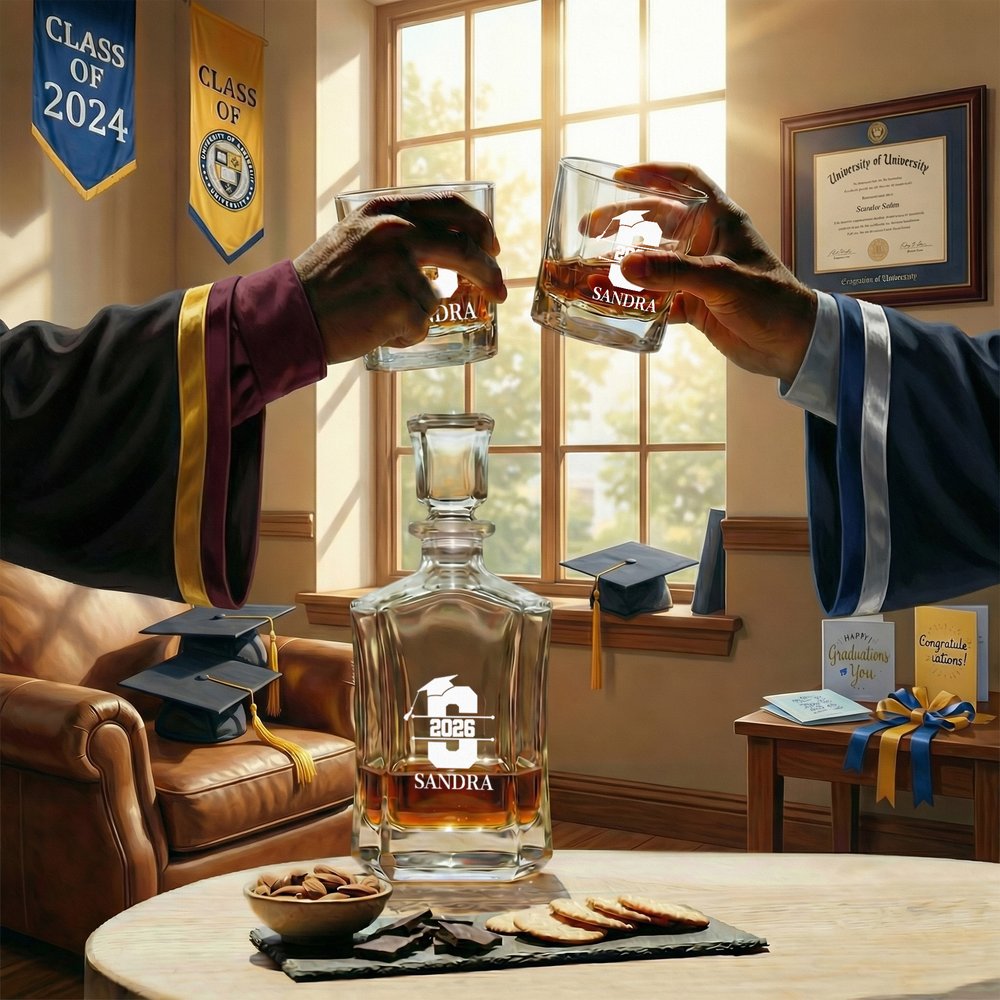 Met de initialen van afstudeercaps als kernelement van het ontwerp, kan dit stuk worden gepersonaliseerd. De verfijnde en elegante stijl combineert herdenkingsbetekenis met visuele aantrekkingskracht en laat een unieke smaak zien.