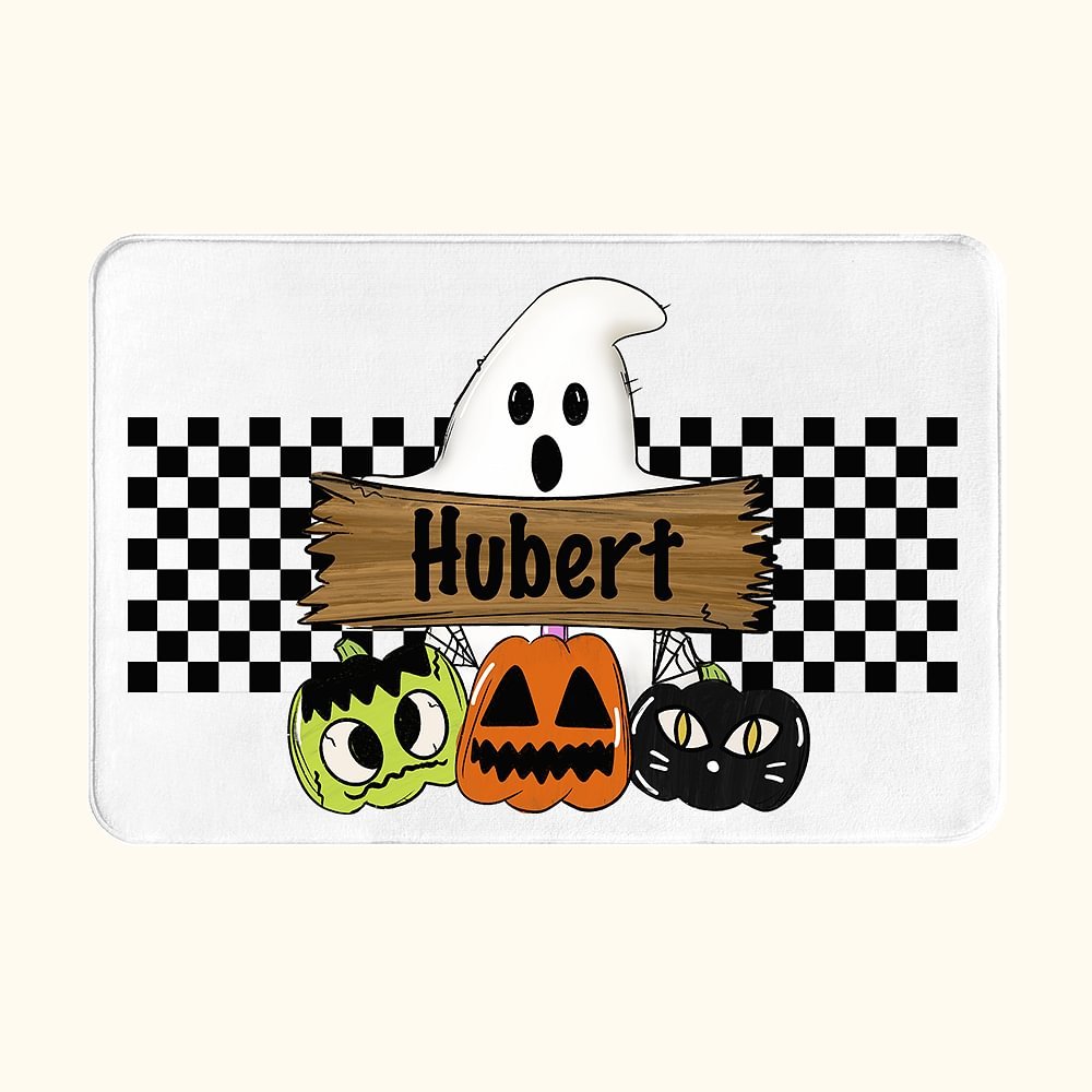 The personalized happy Halloween doormat is the perfect accessory for Halloween parties or home decorations. It is printed with a cute ghost holding a mysterious sign, paired with a bat or black cat-shaped pumpkin, creating a festive atmosphere in celebration of Halloween. You can customize the text on the wooden sign, making it a unique and standout Halloween home decoration.