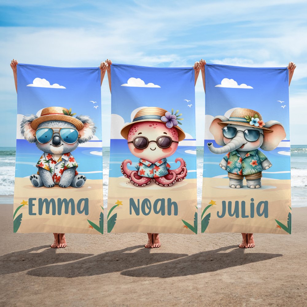 Dit strandlaken heeft een leuk Hawaïaans strandthema met 34 schattige dierenpatronen. Voeg de naam van je kind toe en je hebt een uniek en gedenkwaardig cadeau dat ze zullen koesteren en waarmee ze onvergetelijke herinneringen aan hun kindertijd zullen creëren.