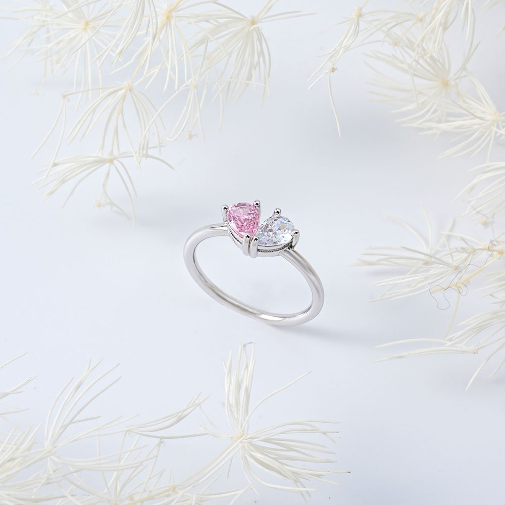 Deze ring heeft een delicaat hartvormig geboortesteenontwerp met de mogelijkheid om de linker en rechter geboortesteen naar wens aan te passen, waardoor het een betekenisvol sieraad is voor elke gelegenheid.