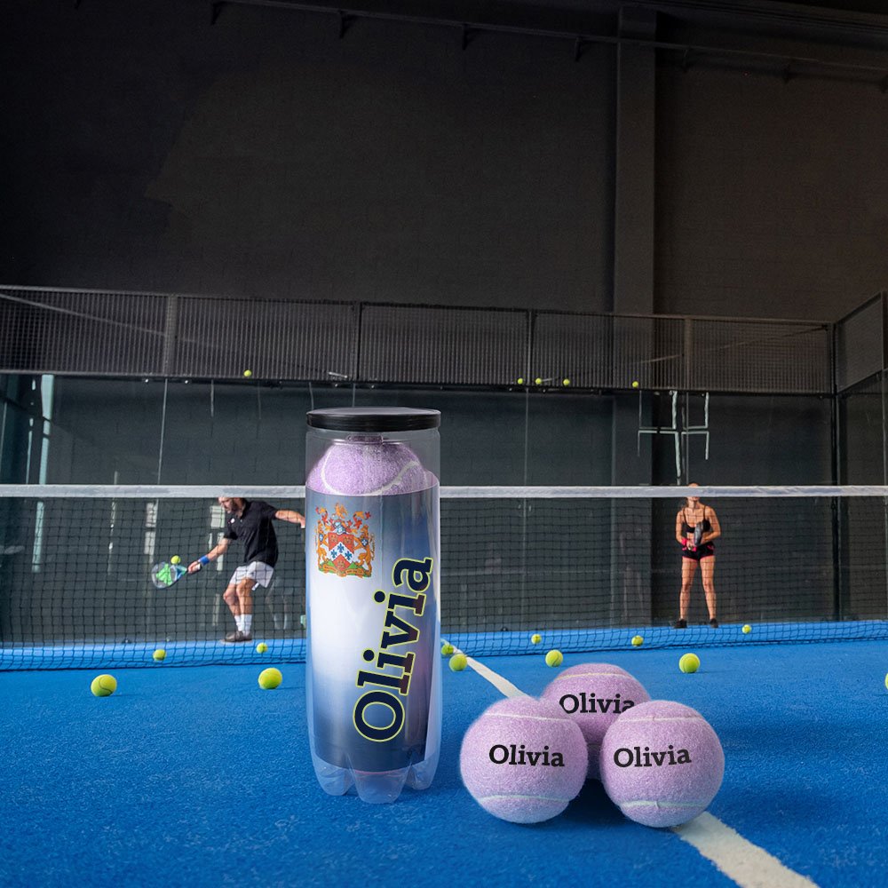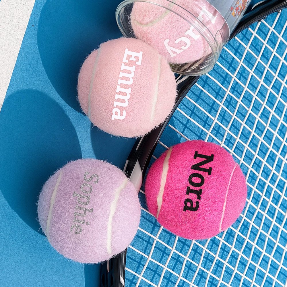 Voeg een persoonlijk tintje toe aan je tennisuitrusting met een aanpasbare naam, waardoor de kleurrijke tennisballen opvallen op het veld.