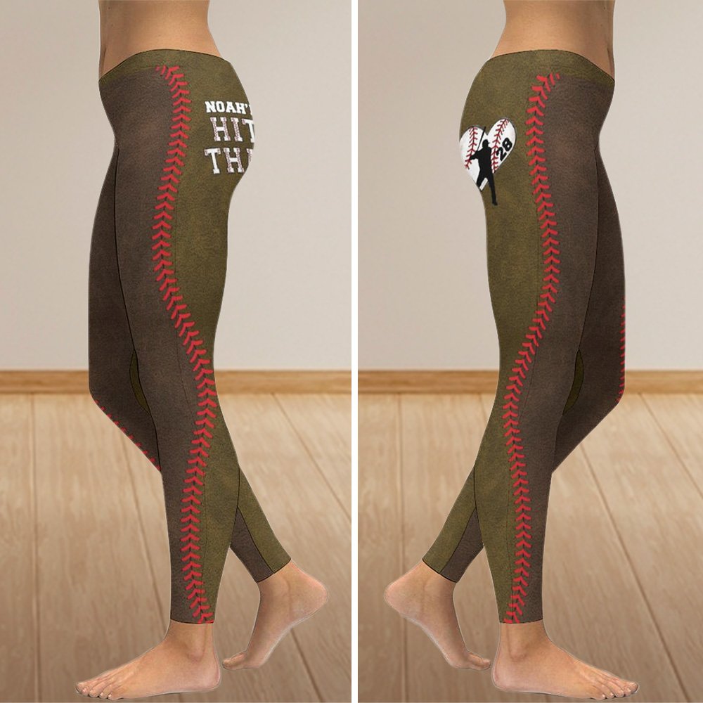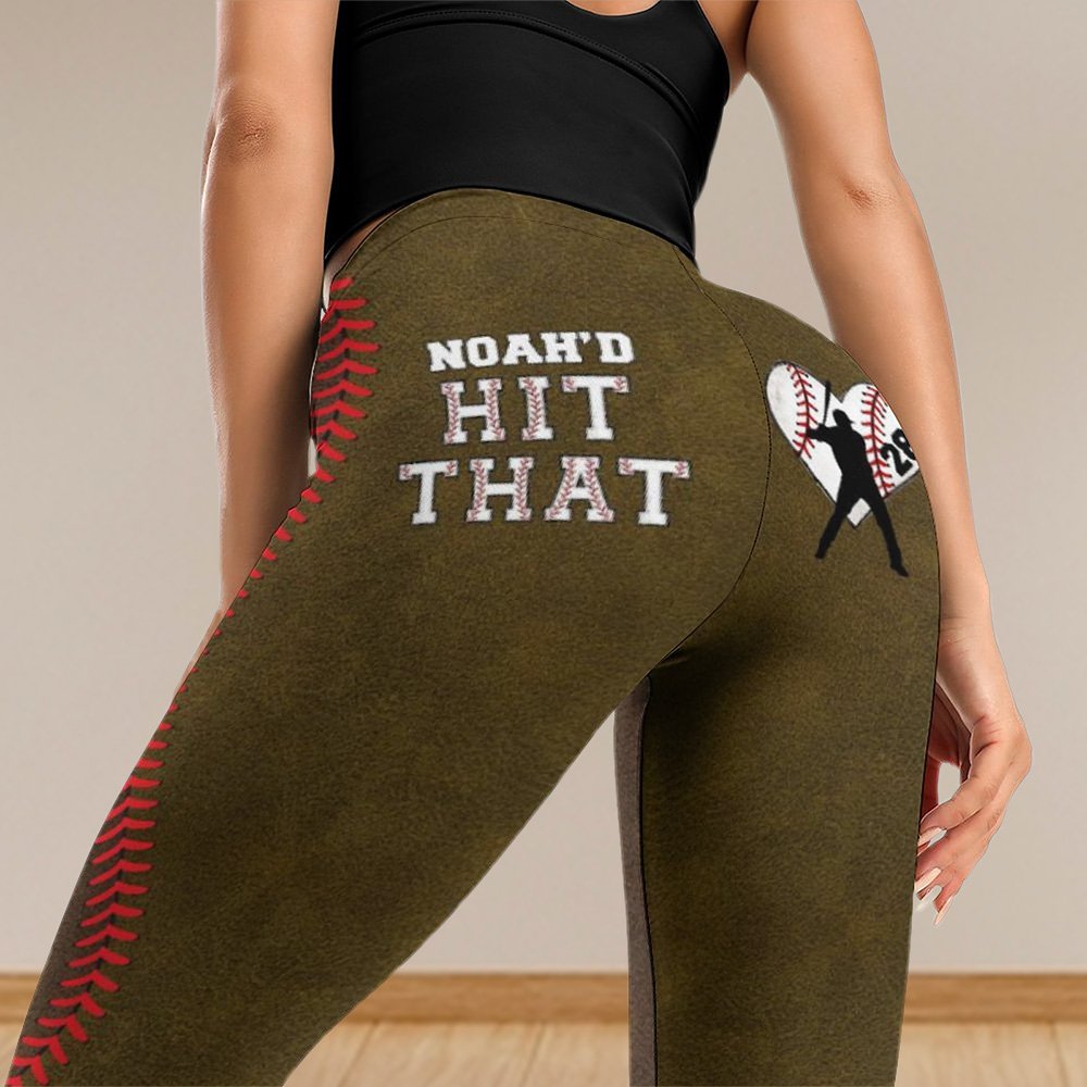Deze op maat gemaakte leggings zijn speciaal ontworpen voor honkbalfanaten, zodat je ze kunt personaliseren met de naam en het nummer van je man, en met "Hit That" vaste tekst. Met een leuke en sportieve esthetiek hebben deze leggings een speels ontwerp dat de liefde voor het spel viert en tegelijkertijd een unieke touch aan je garderobe toevoegt.