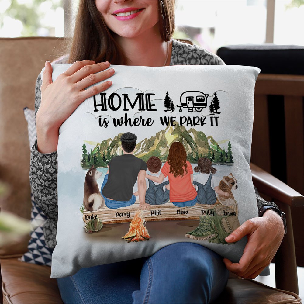 De quote "Home Is Where We Park It" op het kussen is zeer geschikt voor iedereen die van kamperen houdt. Het kussen kan worden aangepast aan uw persoonlijke stijl en voorkeuren.