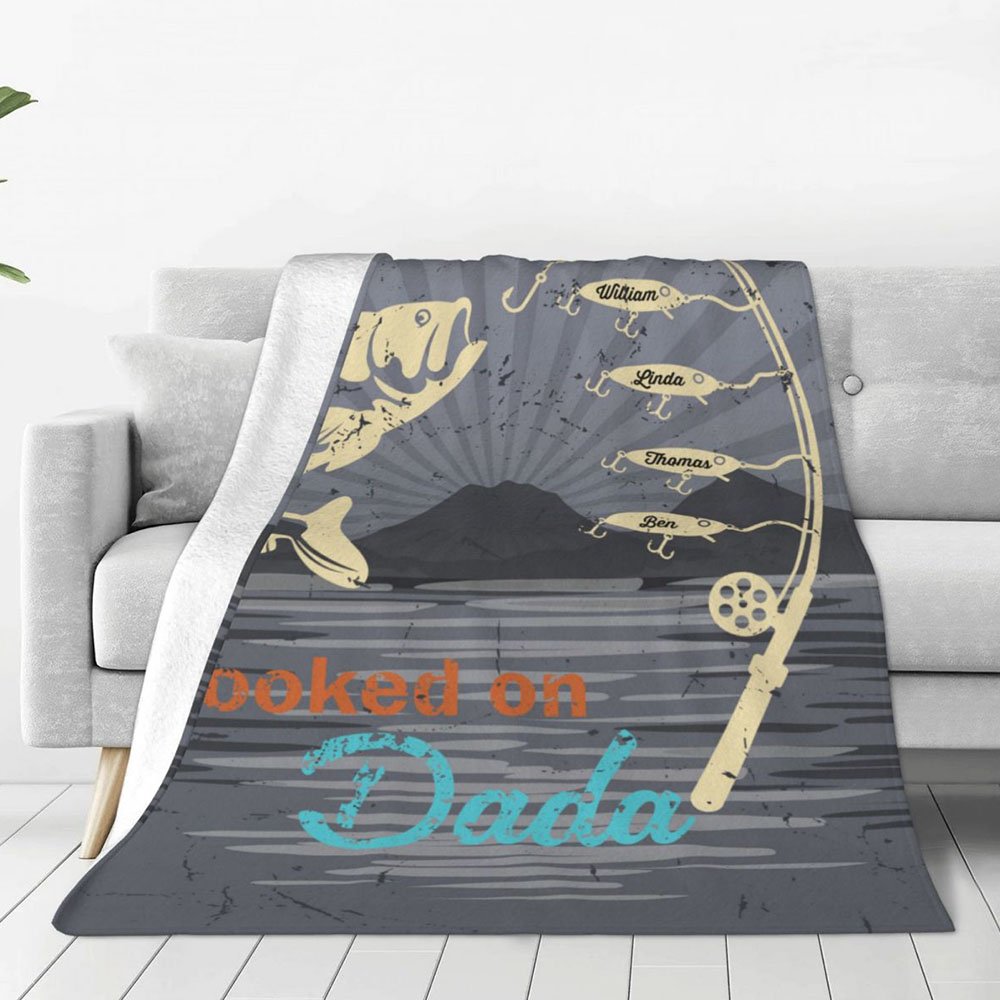 Houdt je vader van vissen? Als het antwoord ja is, dan is deze deken met vispatroon en de naam van een kind een goede keuze als je papa een cadeau wilt geven. We bieden je de keuze uit vijf kleuren en drie maten, en je kunt ook de titel en de naam van het kind aanpassen, wat geweldig is als je vader hem meeneemt om uit te rusten of te gaan vissen!