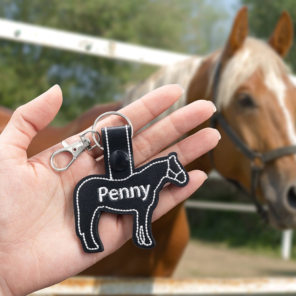 Met het ontwerp van een troetelpaard als aandenken. Je kunt hem personaliseren met een speciale boodschap of naam. Of het nu jouw paard is of een geliefd paard dat je wilt eren, deze sleutelhanger zal dienen als een oprechte herinnering aan jouw band met paarden.