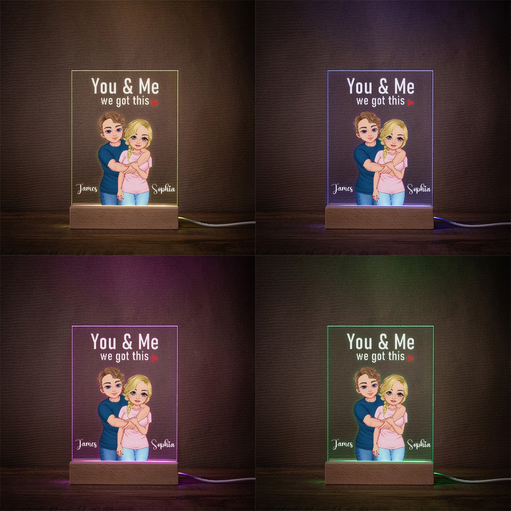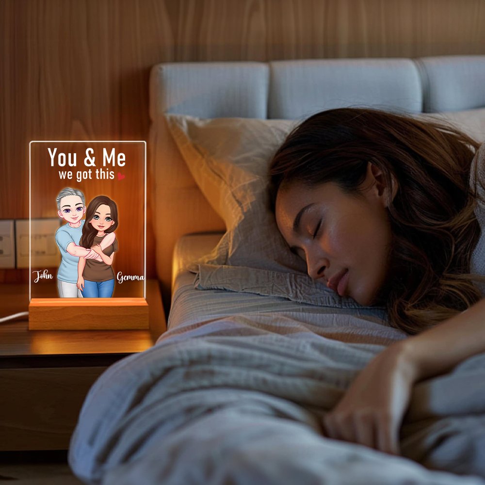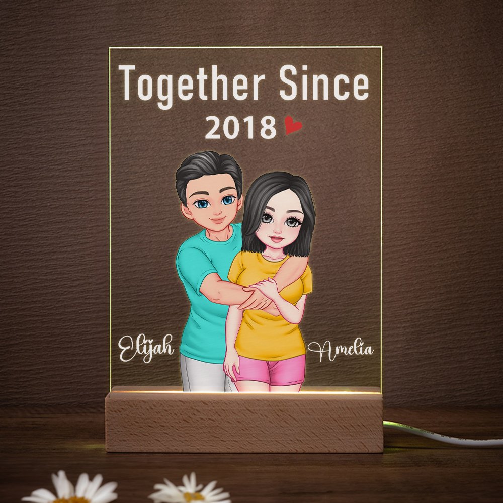 Dit charmante nachtlampje heeft gepersonaliseerde knuffelende stripfiguren, zodat je ze kunt aanpassen van haarkleur tot broekkleur en namen. Het is een hartverwarmende manier om jullie relatie te vieren en een uniek en exclusief decorstuk te creëren. Met zinnen als "Elkaar ergeren sinds..." of "Jij en ik, wij hebben dit", enz. geeft dit nachtlampje de essentie van jullie relatie weer.
