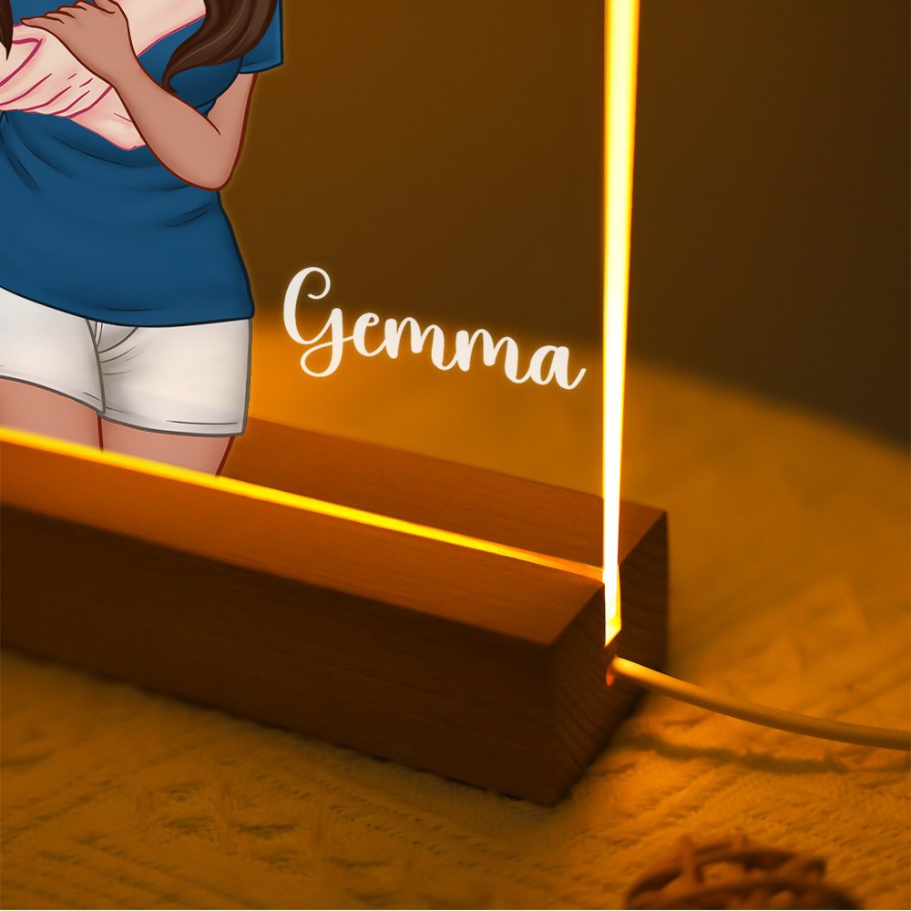 Dit nachtlampje is ontworpen voor een zachte verlichting, zodat je ogen niet worden belast terwijl je je kamer verlicht. Het creëert een warme en uitnodigende sfeer, perfect voor ontspannen avonden of gezellige nachten. De acrylplaat is transparant en heeft duidelijke opdruk. En het nachtlampje heeft 7 instelbare kleuren. Met een houten basis is het perfect voor op een bureau of nachtkastje.