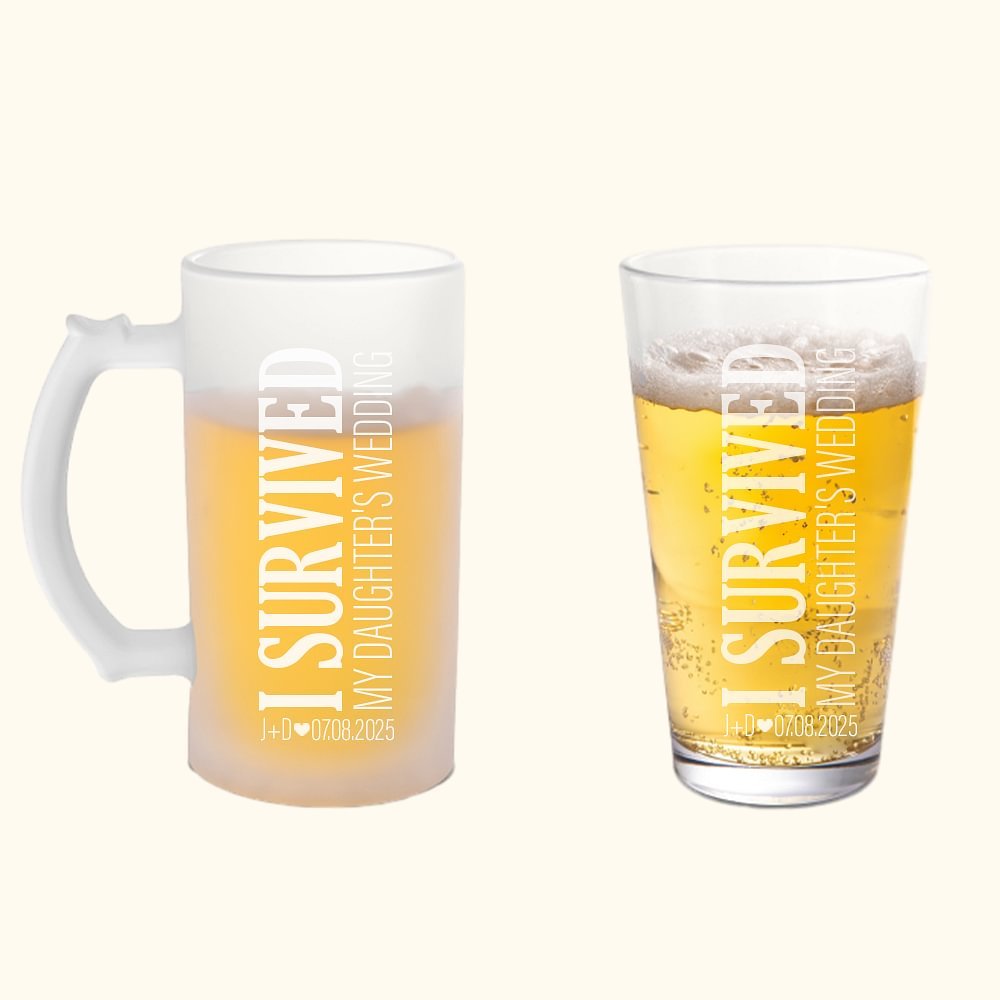 Het thema van het glas "Ik heb de bruiloft van mijn dochter overleefd" bevat diepe gevoelens. Gegraveerd met de initialen van de ontvanger en een speciale datum, zoals de trouwdag van hun dochter, wordt dit glas een sentimenteel aandenken. Zo kunnen ze dat onvergetelijke moment telkens opnieuw beleven en koesteren als ze een toost uitbrengen.