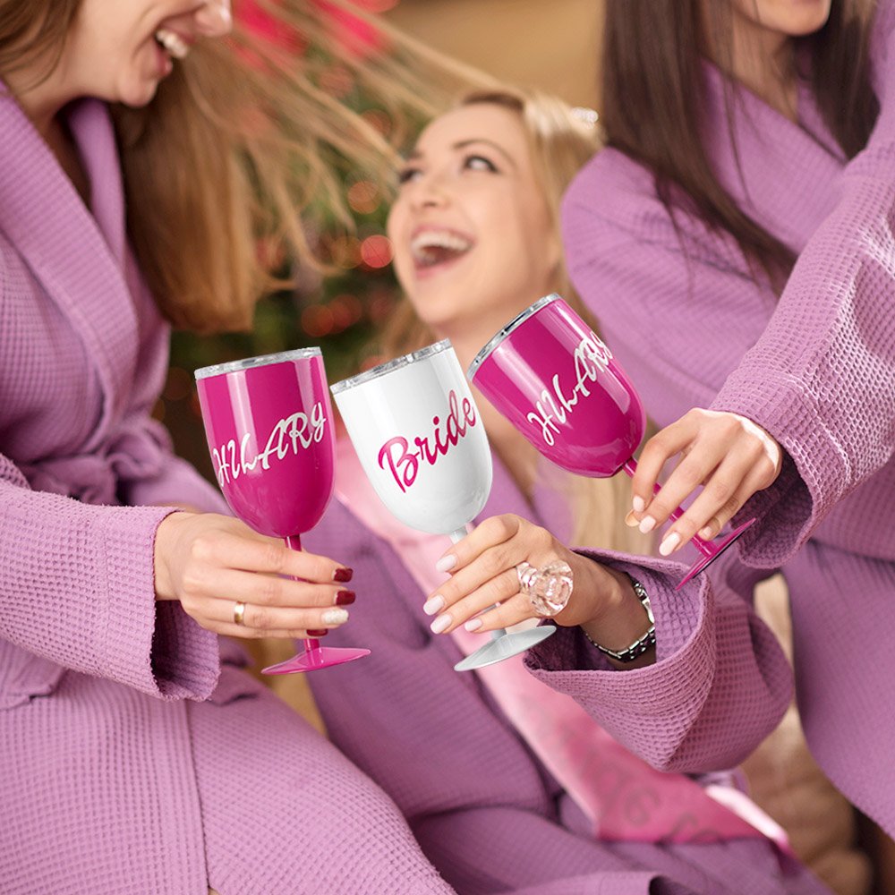 Gepersonaliseerde Dolly Font 10oz Geïsoleerde Stemmed Wine Flutes Tumbler met naam Bachelorette Bridal Party Favors Gift voor bruidsmeisje vrouwen