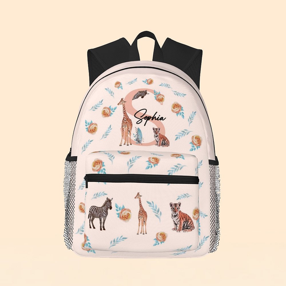 Deze rugzak heeft schattige en speelse giraffe-, zebra- en tijgerontwerpen waar kinderen dol op zullen zijn. Deze rugzak is verkrijgbaar in oranje, roze en blauwe opties en kan worden gepersonaliseerd met de naam en initialen van uw kind, waardoor het echt een speciaal en uniek item wordt.