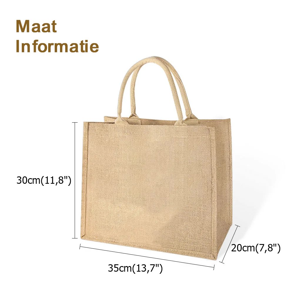 Onze tassen zijn gemaakt van milieuvriendelijk jute, wat er stijlvol uitziet en aansluit bij de principes van milieubescherming. Jute staat bekend om zijn duurzaamheid, ademend vermogen en slijtvastheid. Het is gemakkelijk te dragen en perfect voor dagelijks winkelen, reizen of elk avontuur.