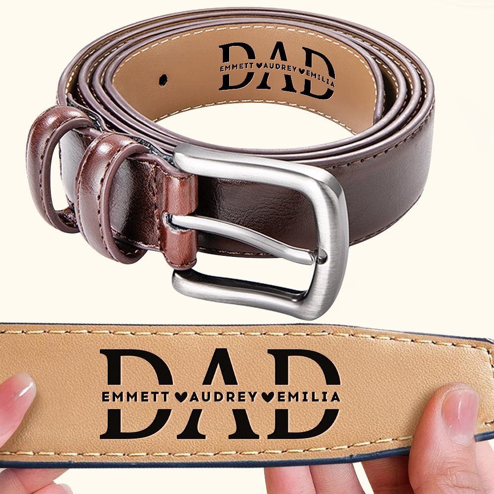 Deze riem is verkrijgbaar in vier kleuren om te voldoen aan de behoeften en voorkeuren van verschillende mensen. De voorkant van de riem kan worden aangepast met de naam van de vader, terwijl de achterkant kan worden aangepast met bijnamen en de namen van 1-12 kinderen of familieleden, wat de volle liefde tussen familieleden laat zien.