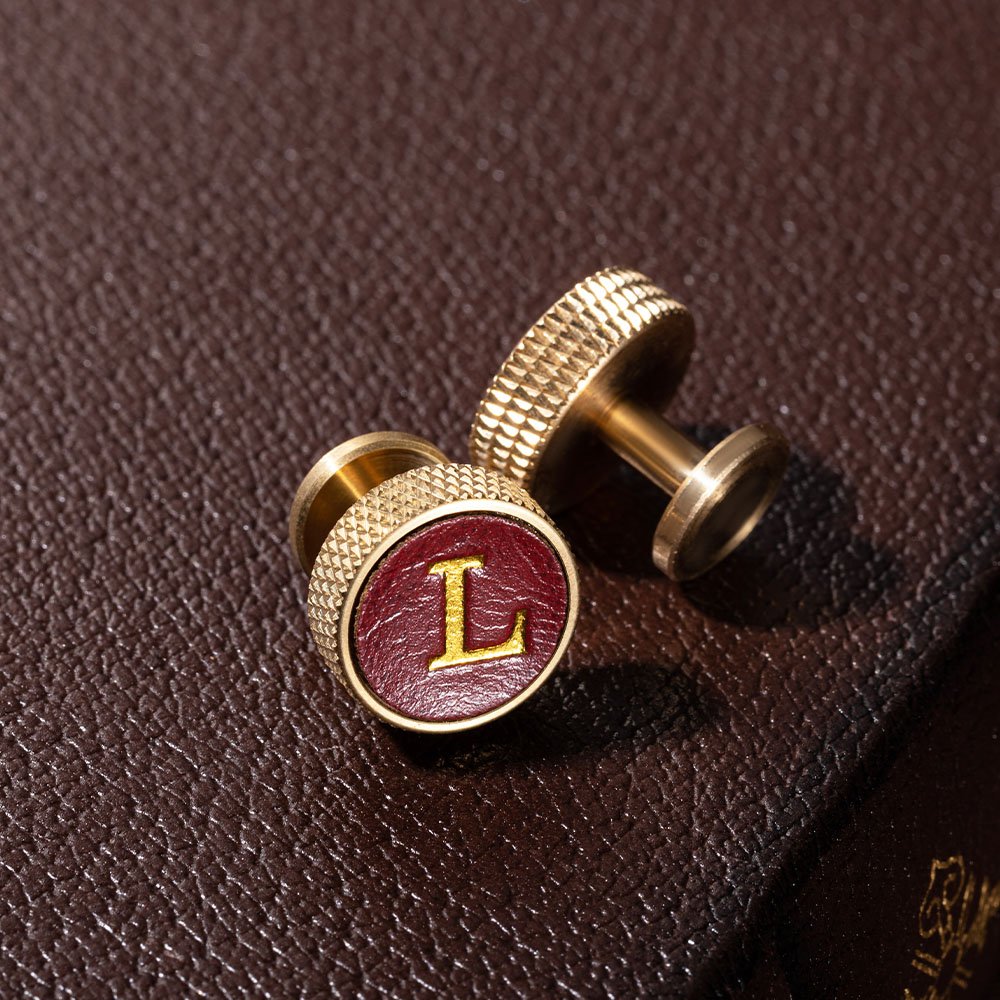 De manchetknopen zijn perfect ontworpen met leer en messing, fijn gekarteld, wat een prachtige textuur laat zien en een vleugje mode en luxe toevoegt aan het algehele ontwerp. Integreer traditioneel vakmanschap met modern design om unieke schoonheid te tonen.