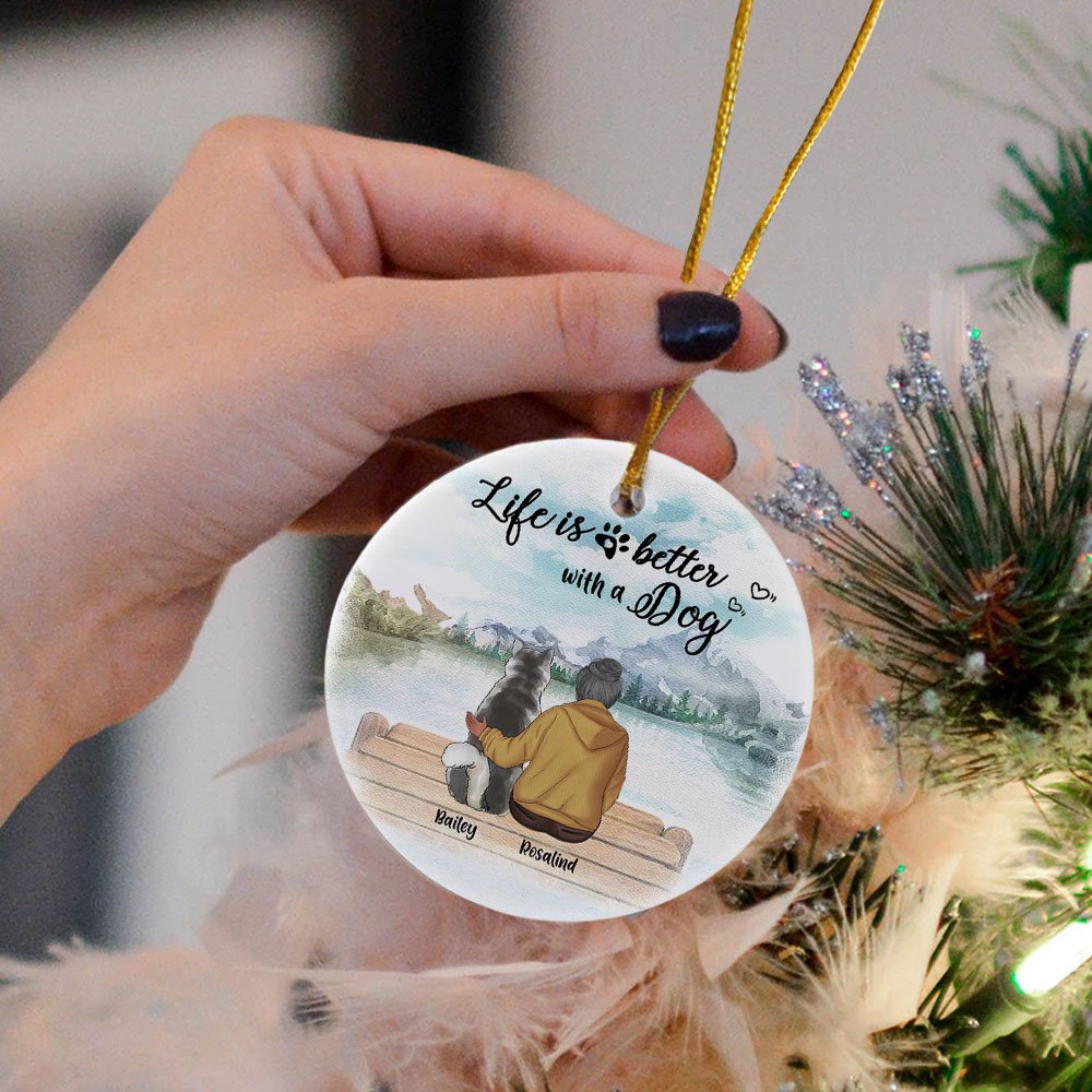 De achtergrond van bergen en rivieren voegt een natuurlijk gevoel toe aan de decoraties. "Life is better with a Dog" toont je liefde en gemis voor honden. De hangende ronde vorm voelt zacht aan, waardoor het opvalt tussen andere accessoires en echt je liefde voor je hond laat zien.