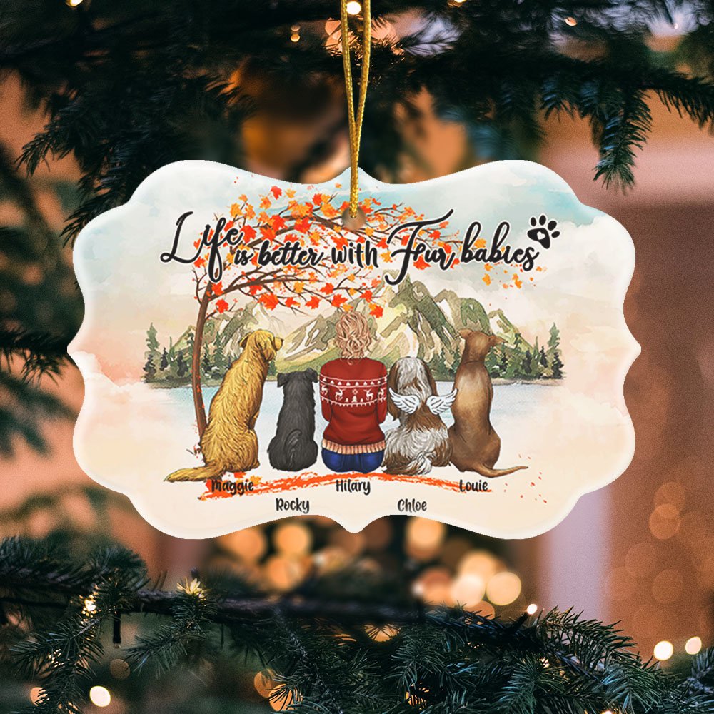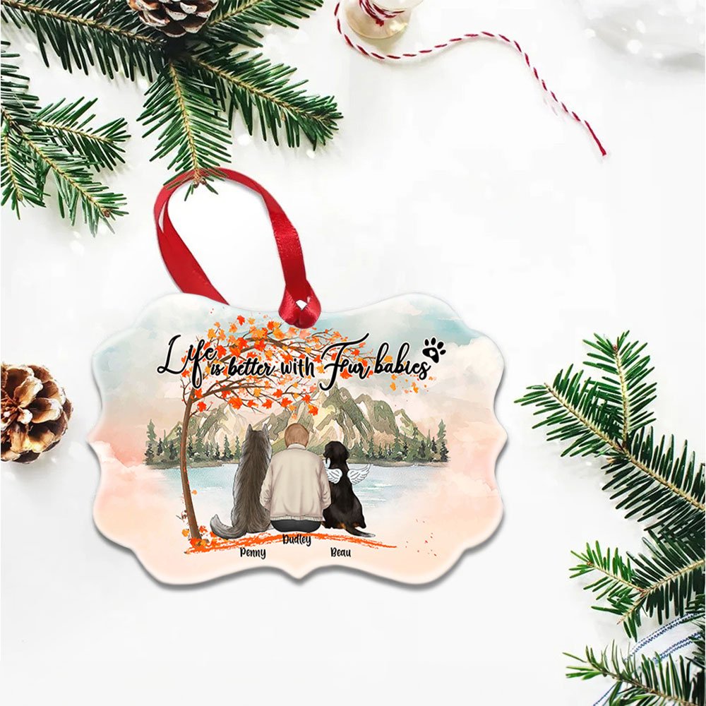 The message "Life Is Better With Fur Baby/Babies" is beautifully printed on the ornament, reminding the good times shared between dogs and owner.