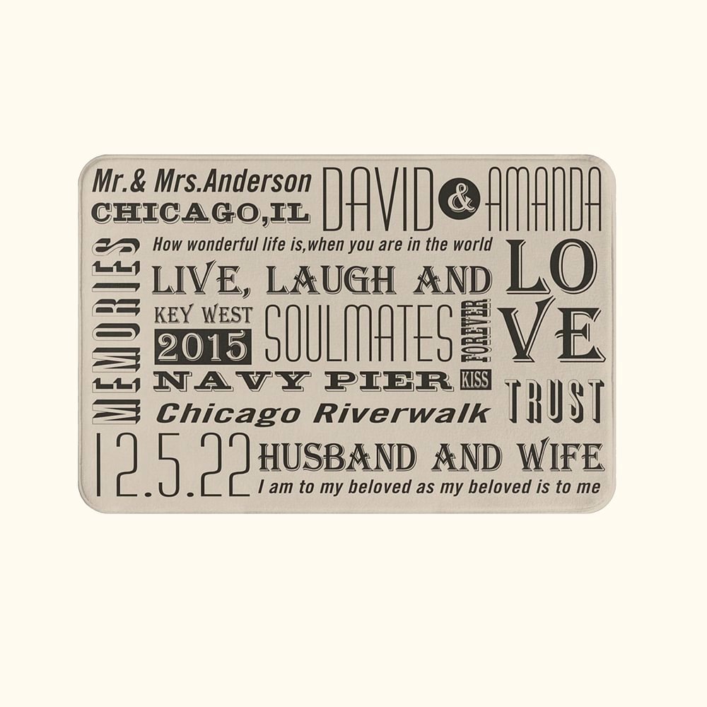 Deze uniek ontworpen deurmat is gecentreerd rond het thema van het herdenken van de meest dierbare herinneringen van koppels. Het is een prachtige manier om mooie herinneringen tussen geliefden vast te leggen en je favoriete momenten te laten zien, zoals speciale data, vakantieplekken, boektitels of stad, enz.