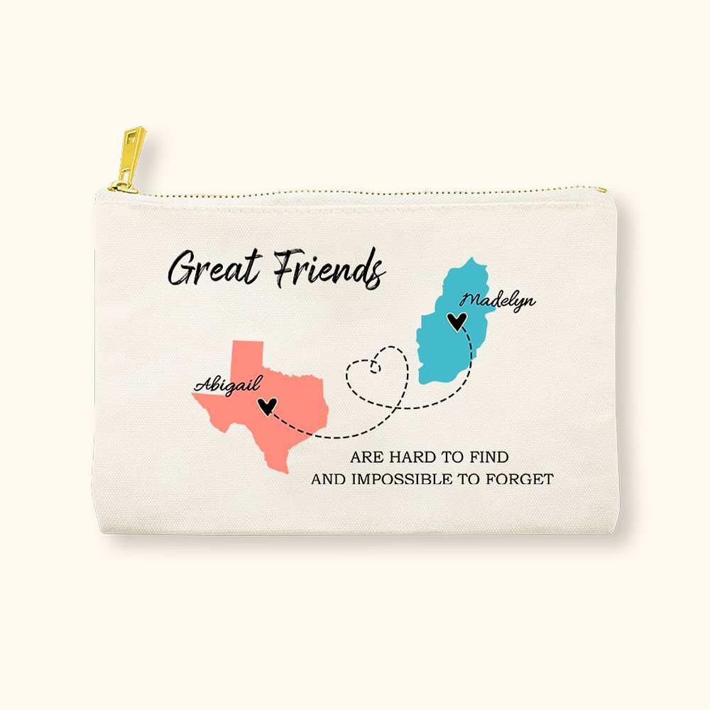 Gepersonaliseerde lange afstand staat kaart make-up tas met naam en tekst draagbare reis accessoire verjaardag afstuderen geschenk voor haar