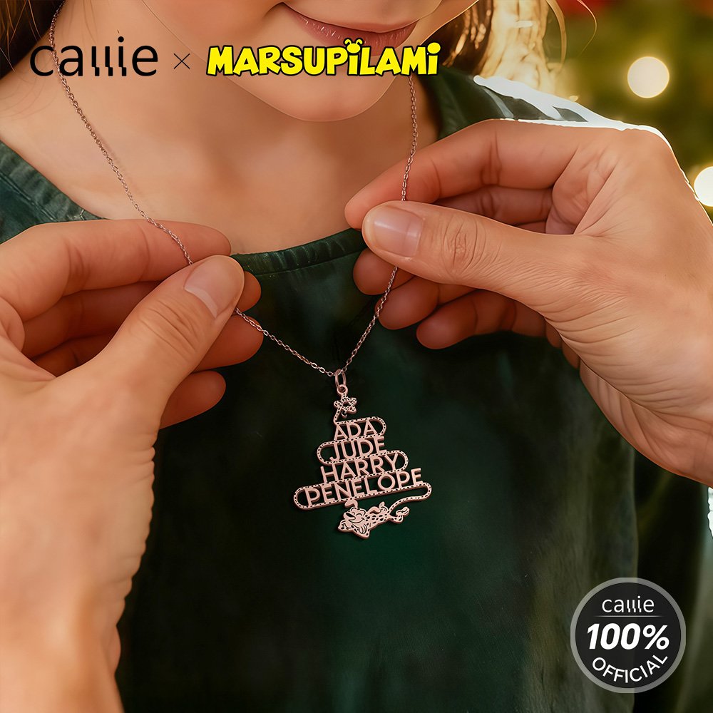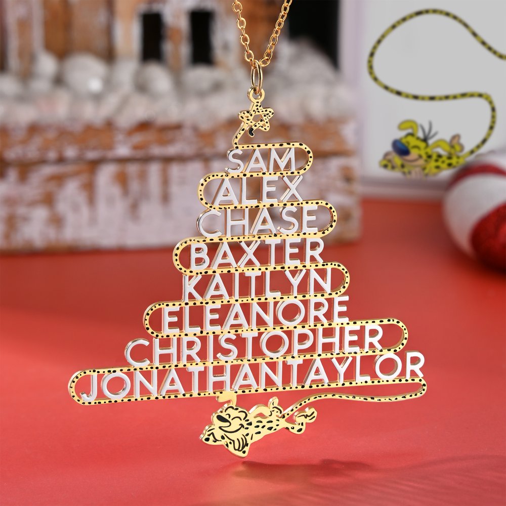 Gepersonaliseerde Langstaartige Marsupilami Kerstboom Halsketting met Naam Kerstcadeau voor Vrouwen Meisjes | Callie × Marsupilami®