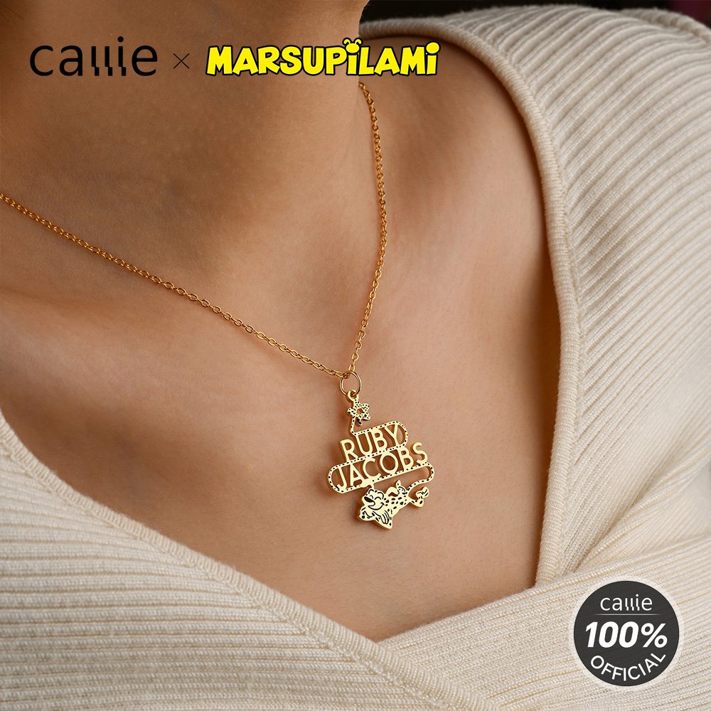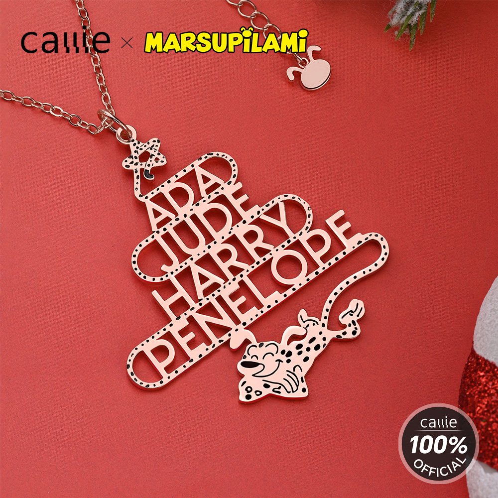 Marsupilami werd in 1952 gecreëerd door de Belgische striptekenaar André Franquin en is een in de jungle levend wezen met een gele vacht, zwarte vlekken en een super flexibele, lange staart. Je kunt 2-8 namen aanpassen in gelaagde, kerstboomvormige typografie, gecombineerd met een speelse Marsupilami-bedel - waardoor een eenvoudige halsketting een draagbare "stamboom" wordt die verbondenheid viert.