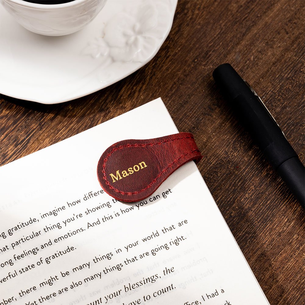 Deze lederen boekenleggerclip is verkrijgbaar in 6 kleuren, waaronder zwart, bruin, koffie en bordeauxrood. Daarnaast ondersteunt de boekenlegger ook het aanpassen van de naam, waardoor het gevoel van exclusiviteit nog groter wordt. Het ontwerp is uniek en opvallend.