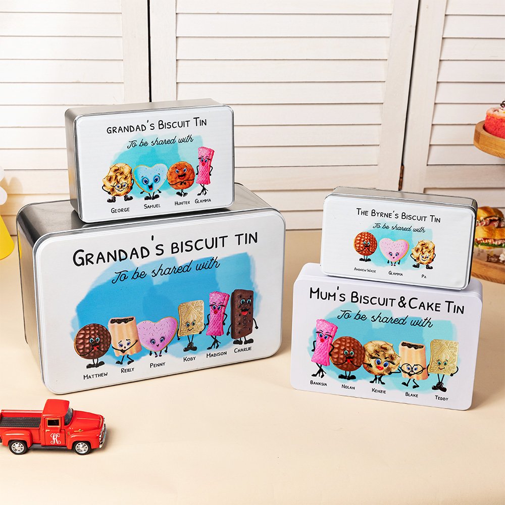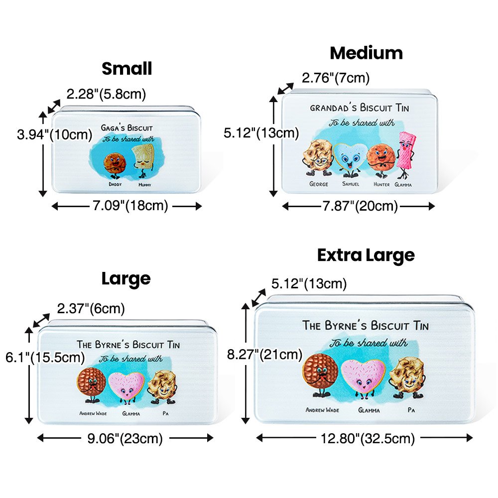 De tekst op het blik kan veranderd worden en er zijn verschillende schattige koekjesfiguurtjes om uit te kiezen, je kunt ze zelfs voorzien van glazen. Tegelijkertijd bieden 2 verschillende formaten meer mogelijkheden voor het opbergen van verschillende soorten voorwerpen.