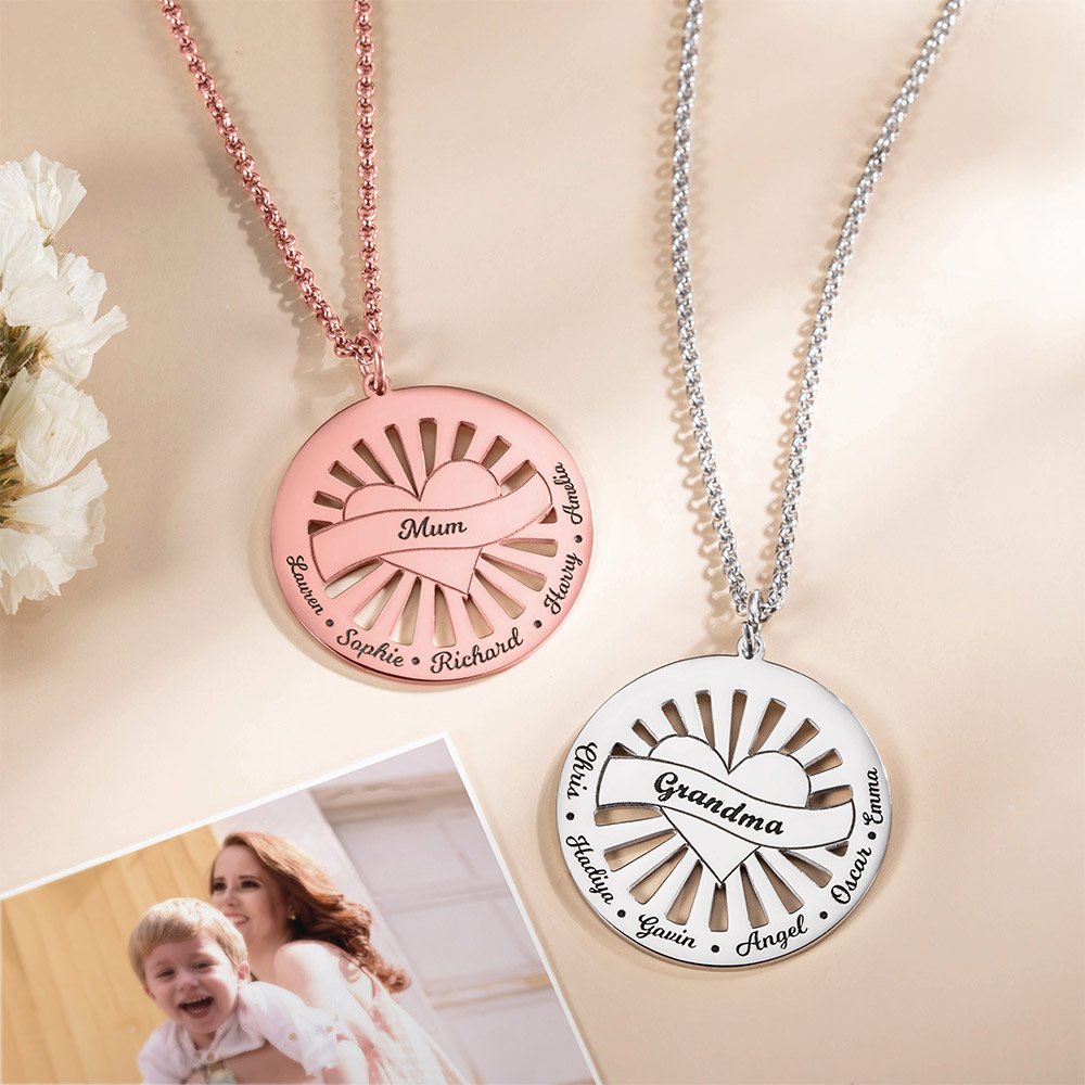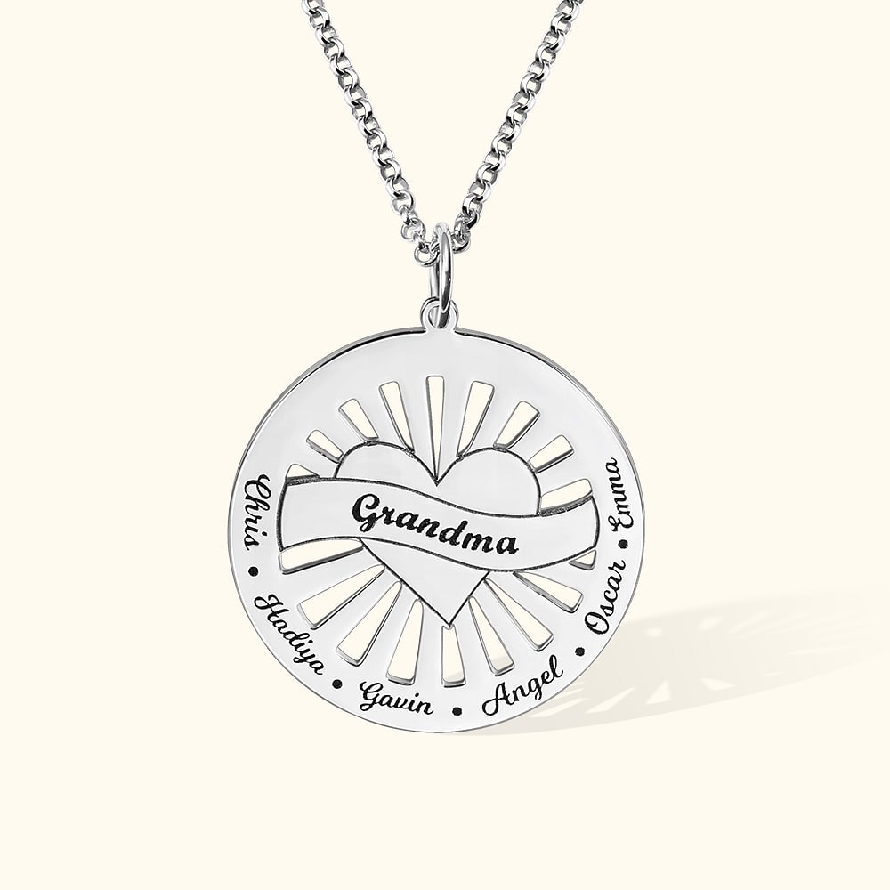 Gepersonaliseerde Midden Hart Vorm Zon Stralen Cirkel Hanger Sterling Zilver Ketting
