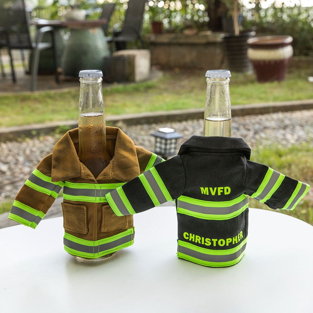 Deze miniatuur brandweerjas fleshoes is echt een uniek cadeau voor elke man of vader die ook brandweerman is. Dankzij het verstelbare ontwerp past hij op verschillende flesformaten, waardoor het een veelzijdig accessoire is voor vele gelegenheden. Bovendien kun je de naam of een tekst naar wens aanpassen om het speciaal te maken.
