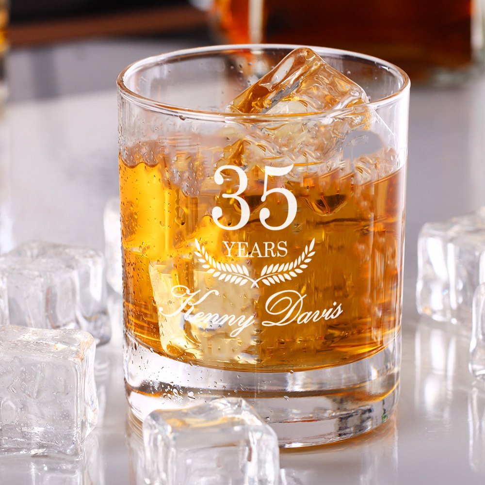 De woorden "YEARS" (Jaren) en het tarwepatroon worden elegant weergegeven en vormen een krachtige herinnering aan een goed geleefd leven en de opwindende reis naar het pensioen. De persoonlijke toevoeging van een naam maakt dit glas echt uniek. Het is niet zomaar een drinkglas, het is een op maat gemaakt aandenken dat jarenlang gekoesterd zal worden.