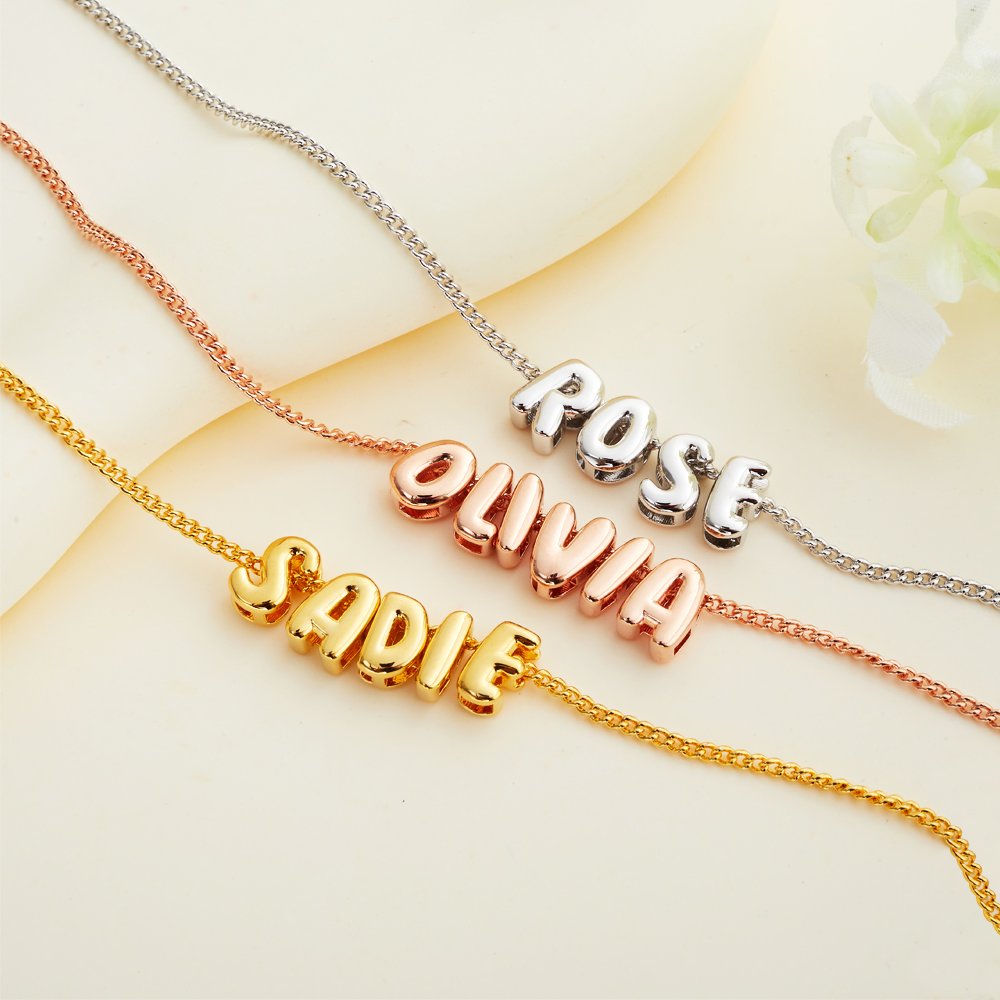 Deze ketting is delicaat en mooi, geïnspireerd door bellenballonnen, waarbij de driedimensionale vorm van een bellenballon wordt gebruikt om een letterhanger te maken, wat een minimalistische stijl van sieraden is. Je kunt er je eigen naam of die van een ander aan toevoegen, zodat het een middel wordt om je liefde uit te drukken.
