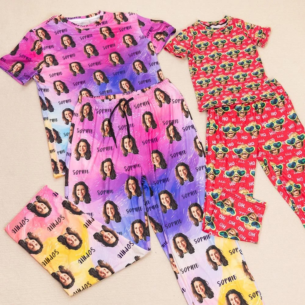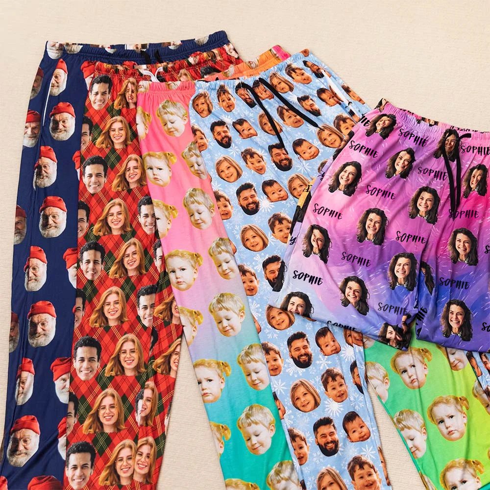 Met deze pyjama kunt u de patronen op de broek aanpassen, zoals de gezichten van huisdieren of foto’s van familieleden. U kunt één tot vier verschillende foto's uploaden. Dit ontwerp maakt de pyjamabroek niet alleen interessanter, maar geeft elk product ook een uniek karakter. 25 verschillende kleurpatronen om uw keuze uit te breiden. U kunt kiezen voor aankoop, afzonderlijk of als pakket.