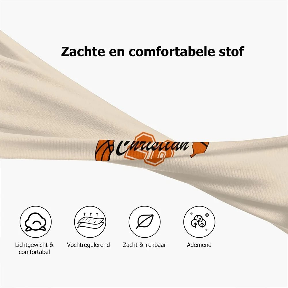 De hoofdband heeft een ontwerp met een krachtige, explosieve bal die je kracht en explosiviteit weerspiegelt. Je kunt kiezen uit 24 verschillende achtergrondkleuren en deze combineren met diverse letterkleuren voor unieke combinaties. Daarnaast is het mogelijk om de naam en het nummer op de hoofdband aan te passen, waardoor het een uniek sportaccessoire wordt.