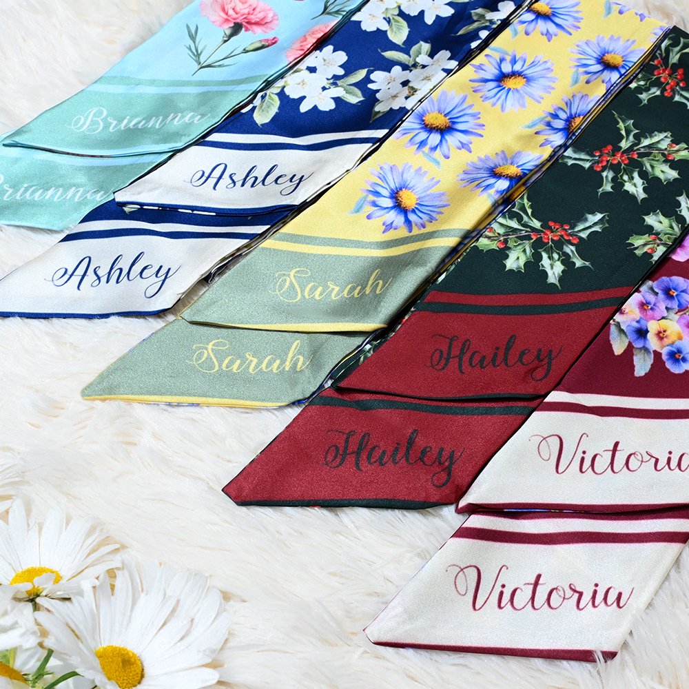 Deze customized geboortebloem hoofdband handtas sjaal is het perfecte modeaccessoire voor stijlvolle vrouwen. Kies uit verschillende levendige basiskleuren en personaliseer het met je geboortebloem en naam, zodat het echt een uniek stuk wordt.