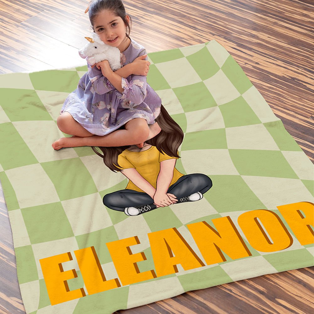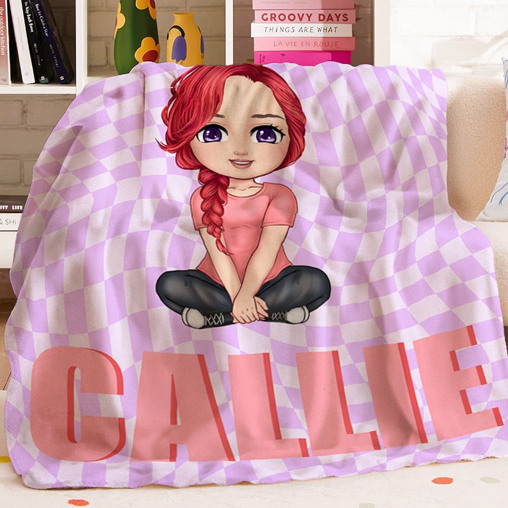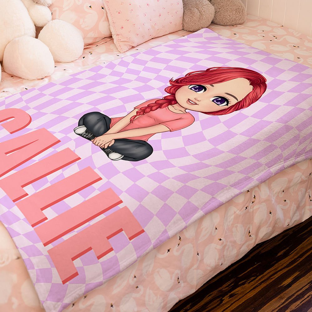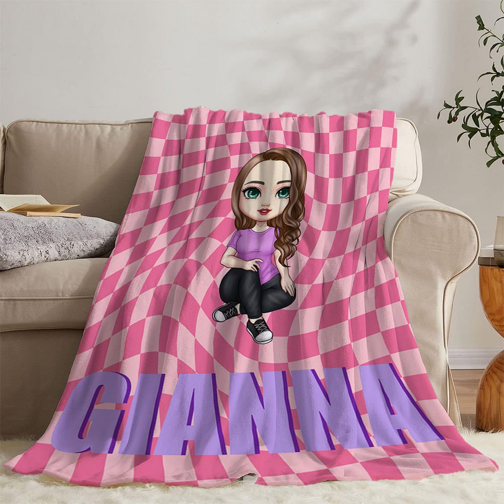 Deze deken is meer dan alleen een knus dekentje. Het is een unieke uitdrukking van jou, met een levendig meerkleurig dambordpatroon versierd met schattige stripfiguurtjes. En als je hem personaliseert met een schaduwnaam, wordt het echt een uniek aandenken.