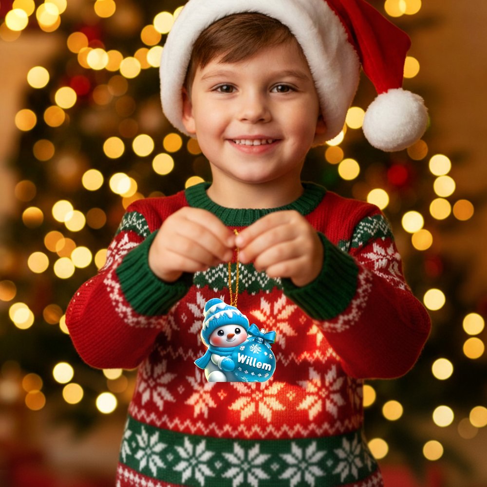Dit charmante ornament in de vorm van een sneeuwpop brengt een vleugje eigenzinnigheid in uw kerstdecoratie. Het is verkrijgbaar in negen levendige kleurenvarianten, met zorg vervaardigd om uw kerstboom op te vrolijken. Wat het echt bijzonder maakt, is dat u de naam kunt aanpassen, zodat u een uniek aandenken creëert dat zowel schattig als betekenisvol is.