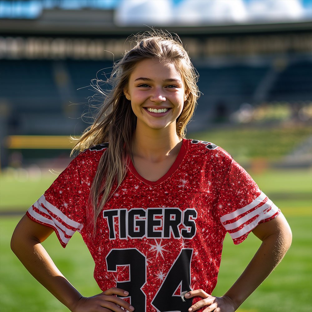 Functie: | V-hals, Huidvriendelijk, Comfortabel, Vochtabsorberend, Glittereffectontwerp, American Football-thema |
