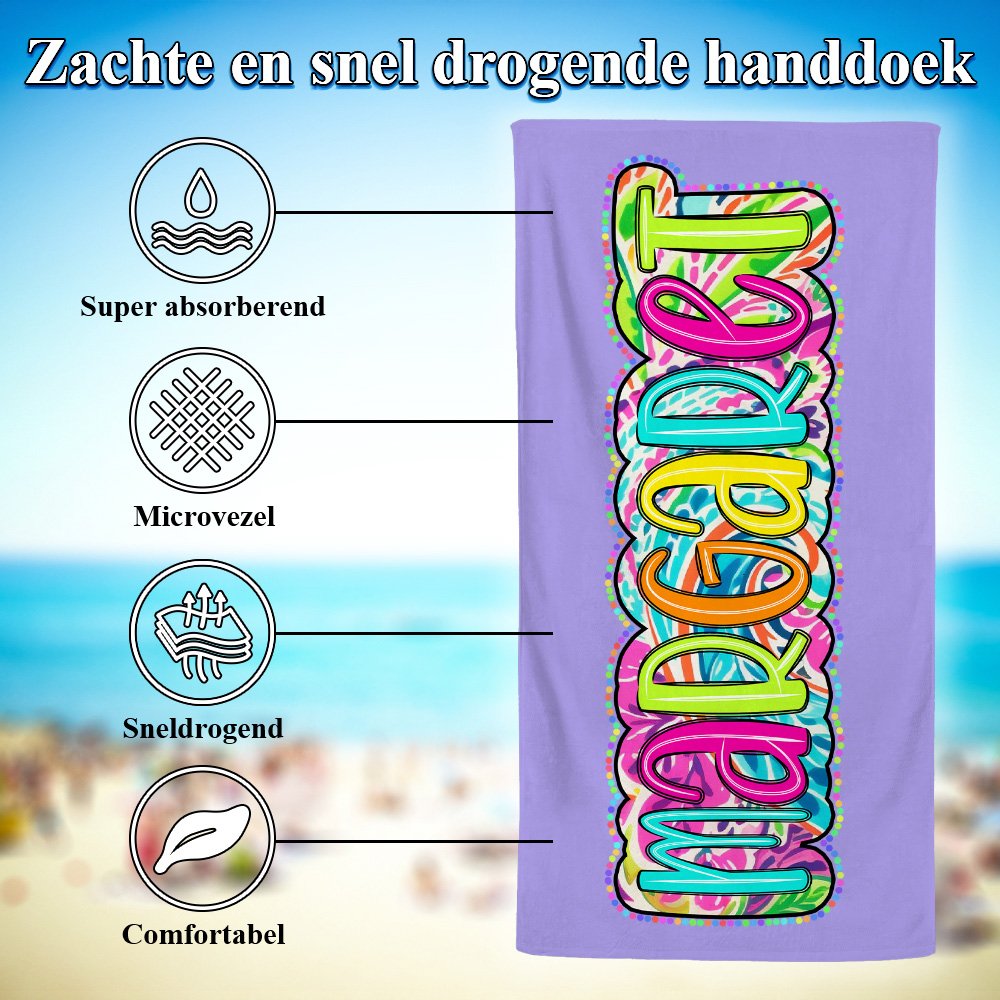 Ons veelkleurig paisley strandlaken is een prachtig gezicht dat kleur en stijl toevoegt aan elk stranduitstapje of bijeenkomst bij het zwembad. Dit strandlaken wordt een uniek en opvallend geschenk met de optie om het te personaliseren door uw naam toe te voegen.