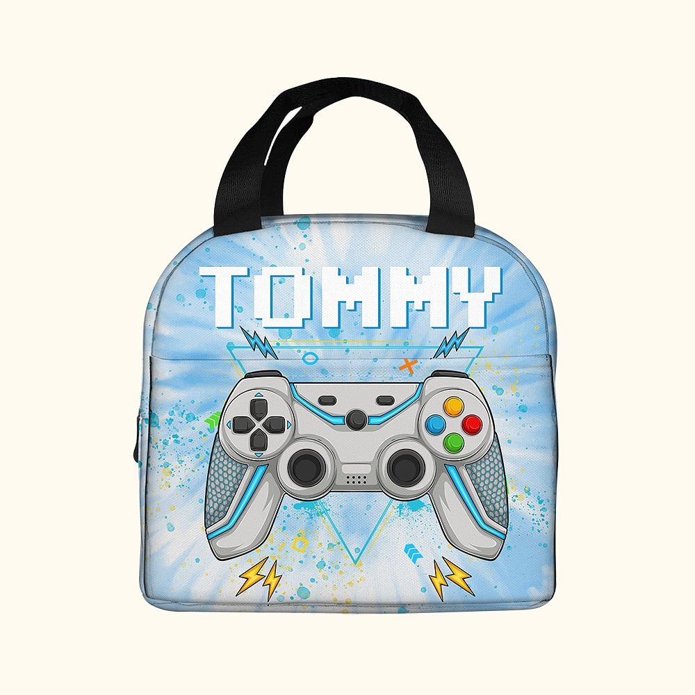 Gepersonaliseerde Tie-dye Effect Gamepad Ontwerp Oxford Geïsoleerde Lunchtas met Naam School Werk Picknick Buiten Activiteiten Cadeau voor Kids Game L