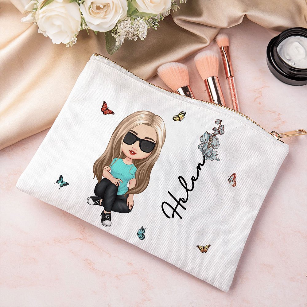 Deze make-uptas kan worden aangepast met een cartoonafbeelding; je kunt je favoriete stijl kiezen, van haarkleur tot T-shirtkleur. Daarnaast is het tasje perfect geïntegreerd met de geboortebloem en kun je kiezen uit 7 kleuren tasjes. Deze verschillende opties maken het een uniek en exclusief cadeau.